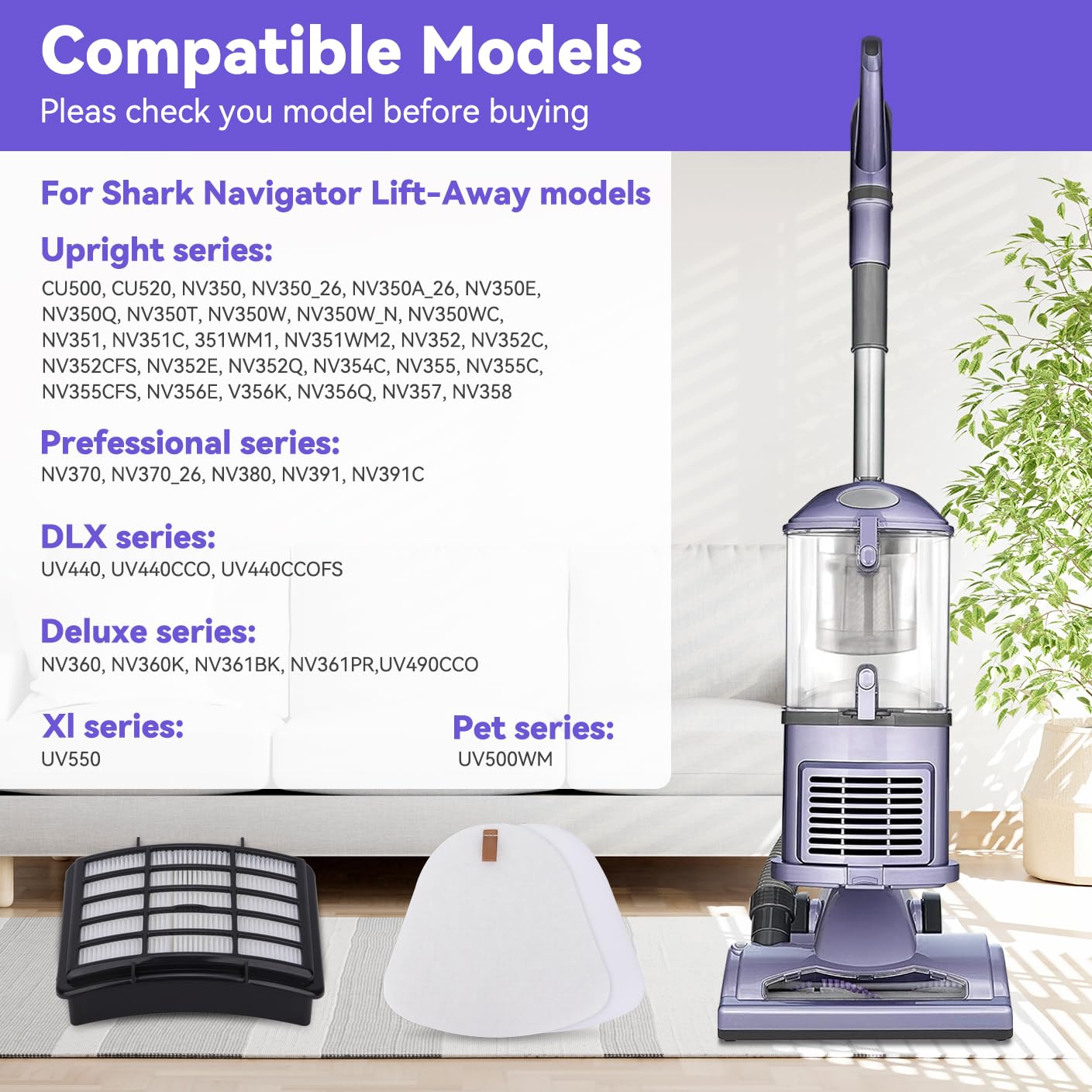 - Compatible Models: Compatible with Shark Navigator Lift-away Vacuum : CU500, CU520, NV350_26, NV350A_26, NV350E, NV350Q, NV350T, NV350W, NV350W_N, NV350WC, NV351, NV351C, NV351WM1, NV351WM2, NV352, NV352C, NV352CFS, NV352E, NV352Q, NV354C, NV355, NV355C, NV355CFS, nv356E, NV356K, NV356Q, NV357, NV358, NV358BRN, NV360, NV360K, NV361BK, NV361PR, NV370, NV370_26, NV380, NV380C, NV391, NV391C, UV440, UV440CCO, UV440CCOFS, UV490CCO, UV500WM, UV540, UV540CCO, UV541CCO, UV550, ZU503AMZ,Compatible for Shark Part # Xff350 & # Xhf350