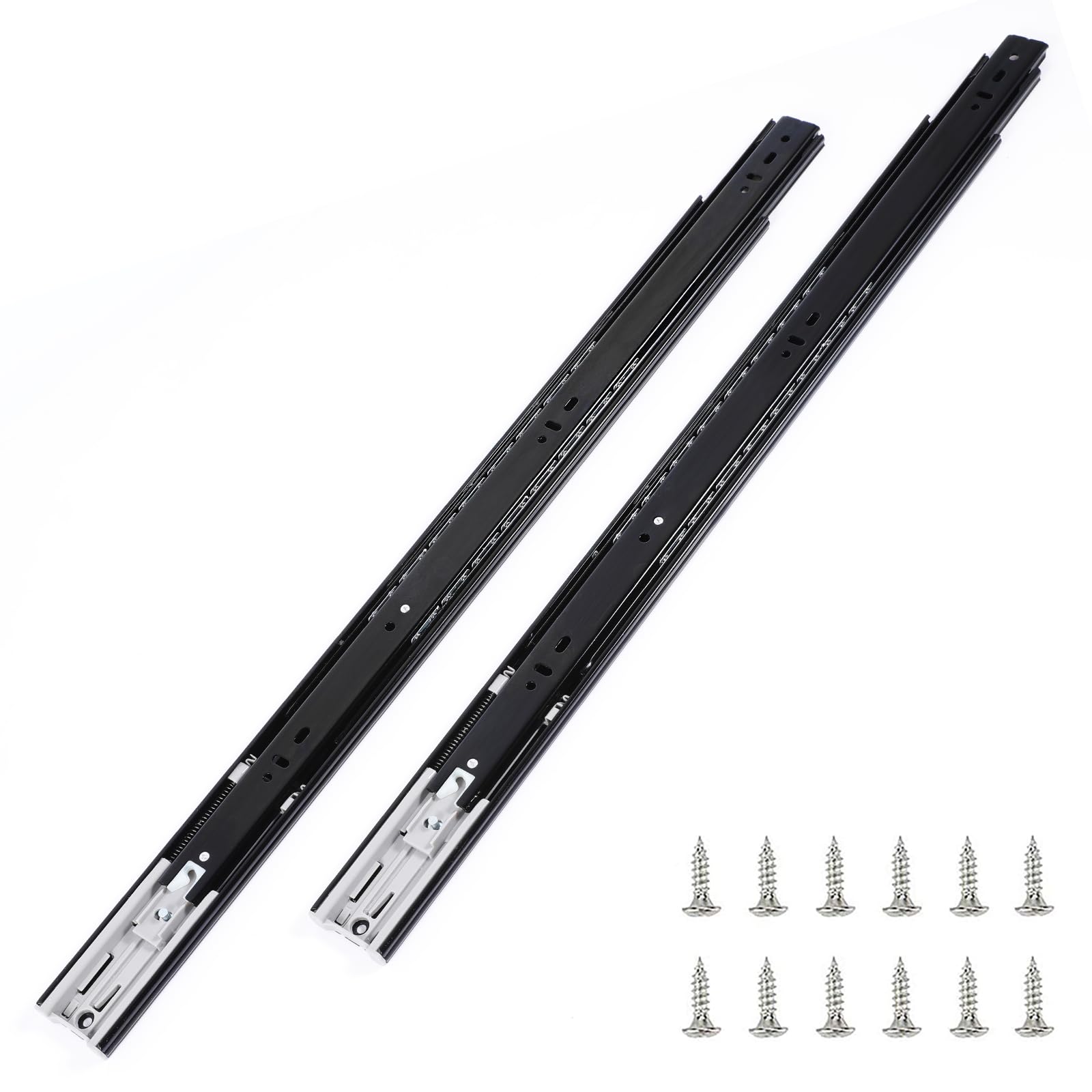 - 【High quality materials】Our drawer slides are made of high-grade cold-rolled steel with a zinc-plated finish and are sturdy enough to hold up to 100+ pounds for dressers, cabinets and kitchen drawers.