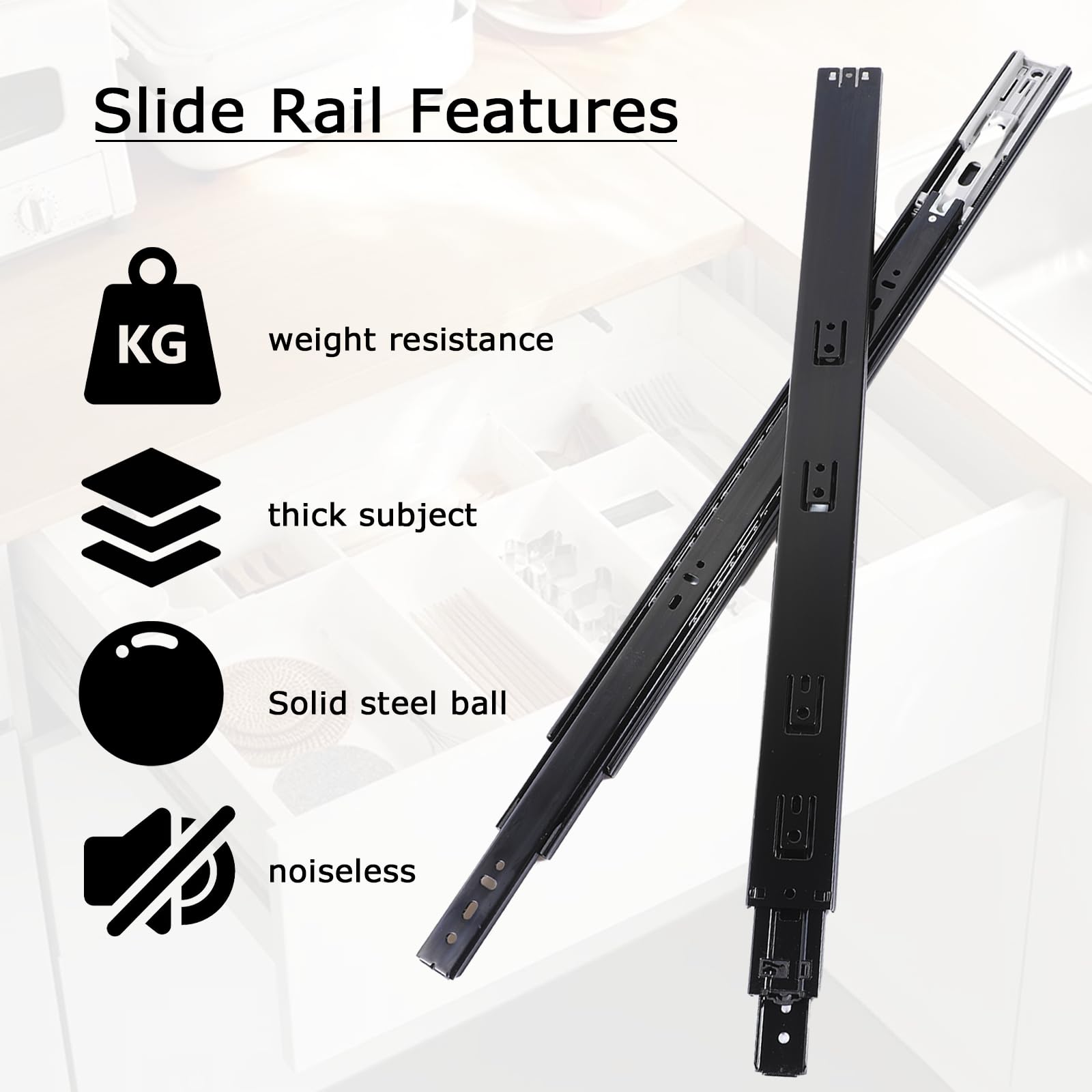 - 【SOFT CLOSE AND QUIET】The ball bearing design ensures that the drawer slide rails are smooth and silent. The slides contain a spring mechanism that reduces noise when using the drawer, so that it won't disturb your family's rest even at night.