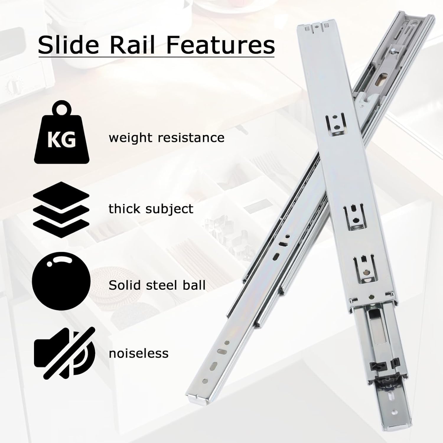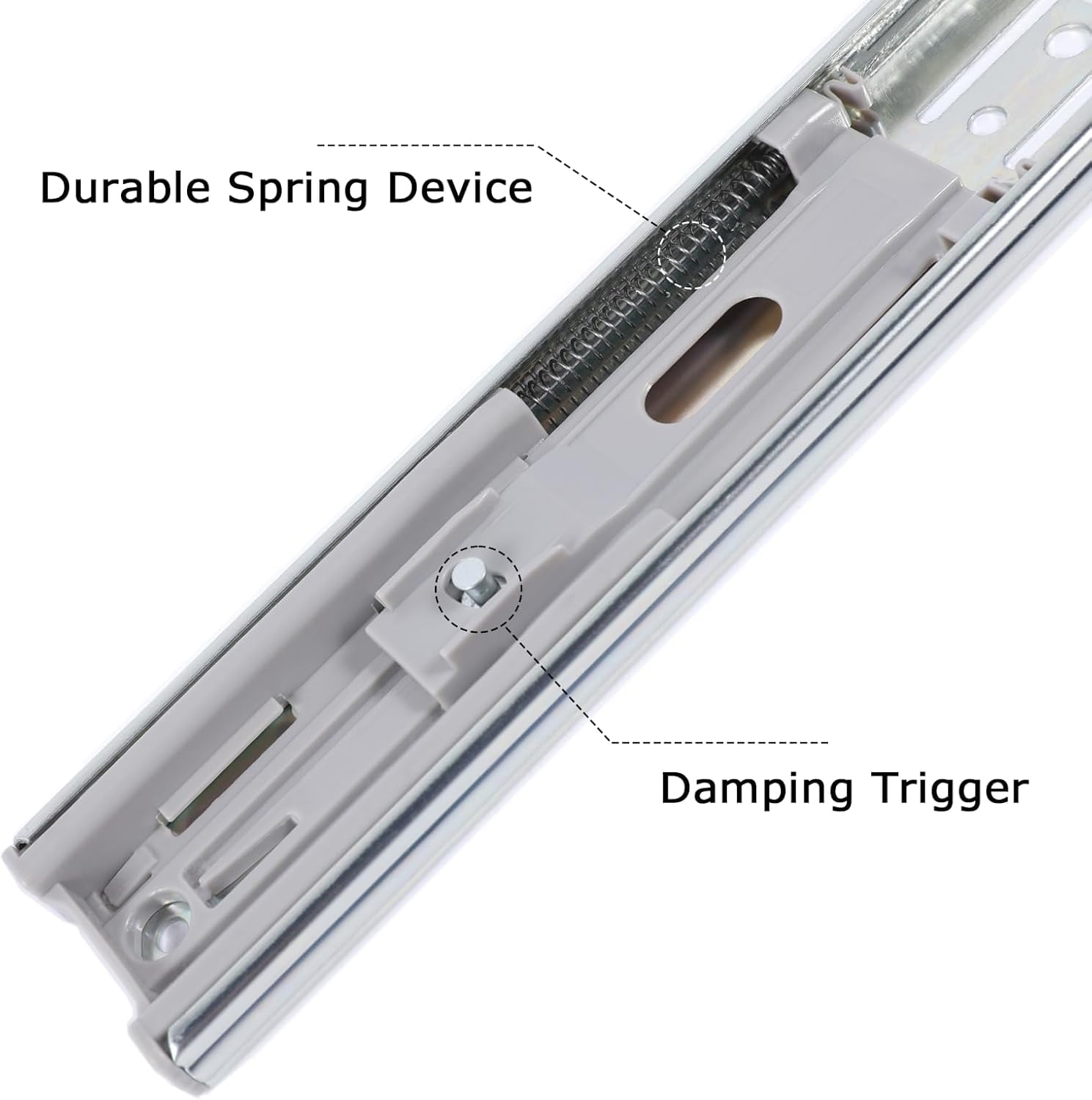 - 【SOFT CLOSE AND QUIET】The ball bearing design ensures that the drawer slide rails are smooth and silent. The slides contain a spring mechanism that reduces noise when using the drawer, so that it won't disturb your family's rest even at night.