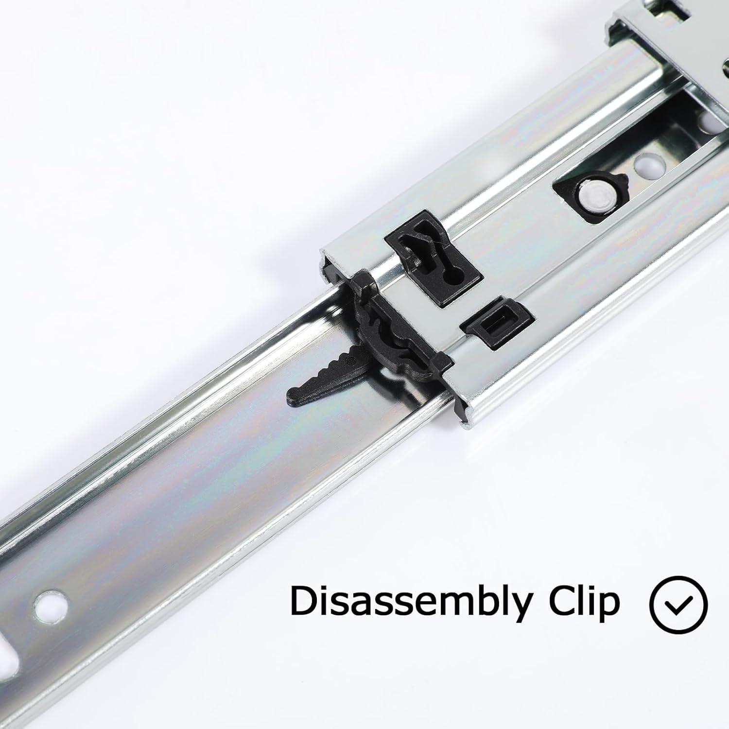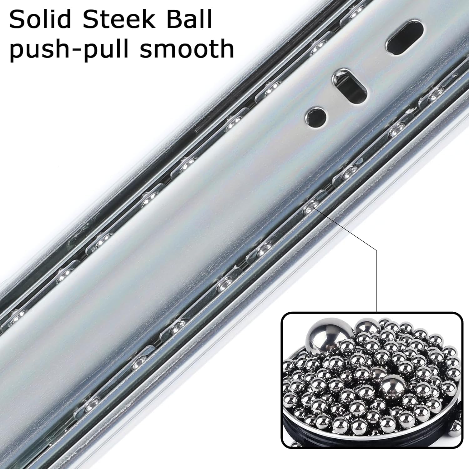 - 【High quality materials】Our drawer slides are made of high-grade cold-rolled steel with a zinc-plated finish and are sturdy enough to hold up to 100+ pounds for dressers, cabinets and kitchen drawers.