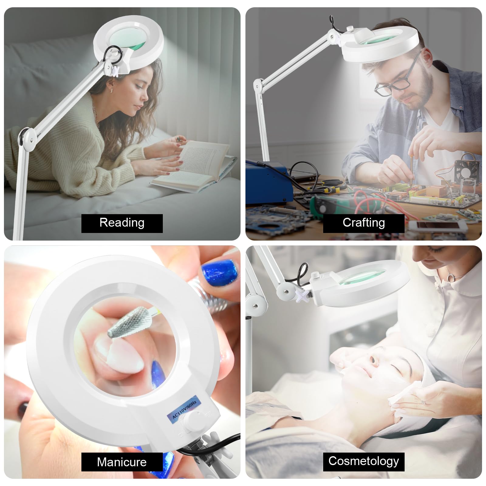 - [Multiple-Use at Home & Work Station]:This 5X magnifying helps them enjoy hobbies by reducing eye strain and avoiding headaches.This mag lamp can be used as a work light for estheticians to do facials, eyelash extensions. for spas and salons, dermatologists, beauticians, jewelers, tattoo artists, dentists etc are a cinch.