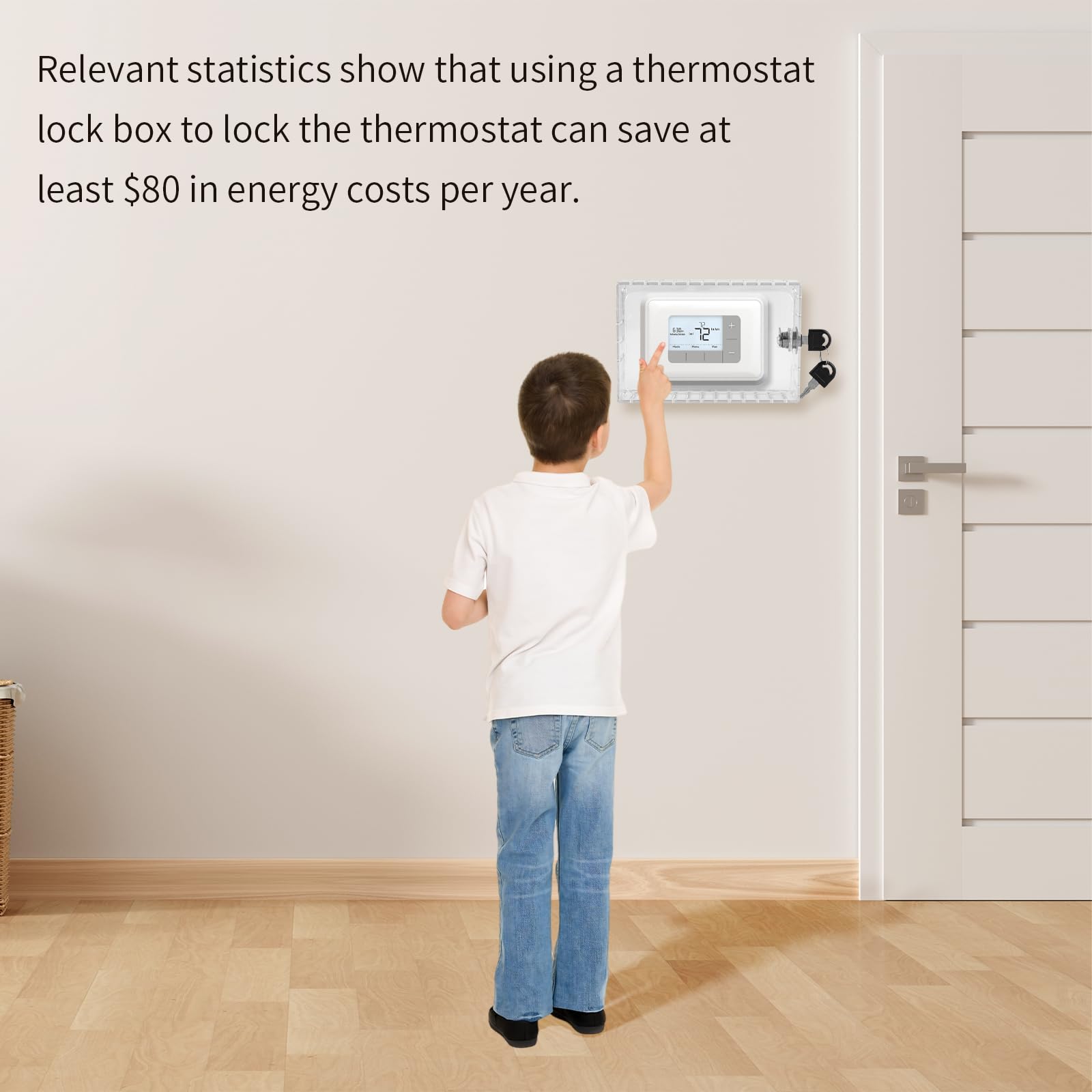 The thermostat lock box with key prevent unauthorized adjustments, tampering and damage to thermostat settings by children, tenants, or the public.Relevant statistics show that using a thermostat lock box to lock the thermostat can save at least $80 in energy costs per year.