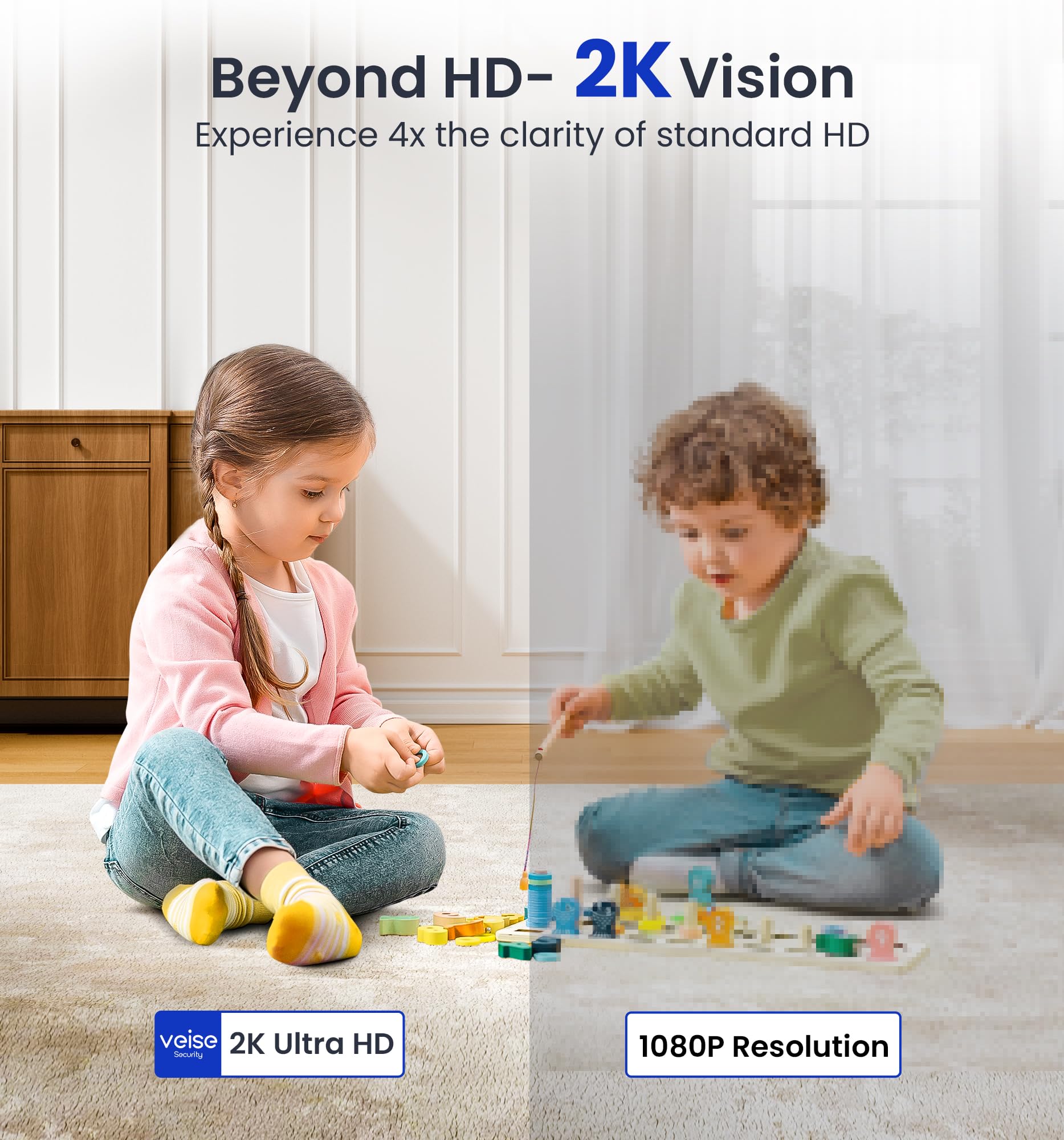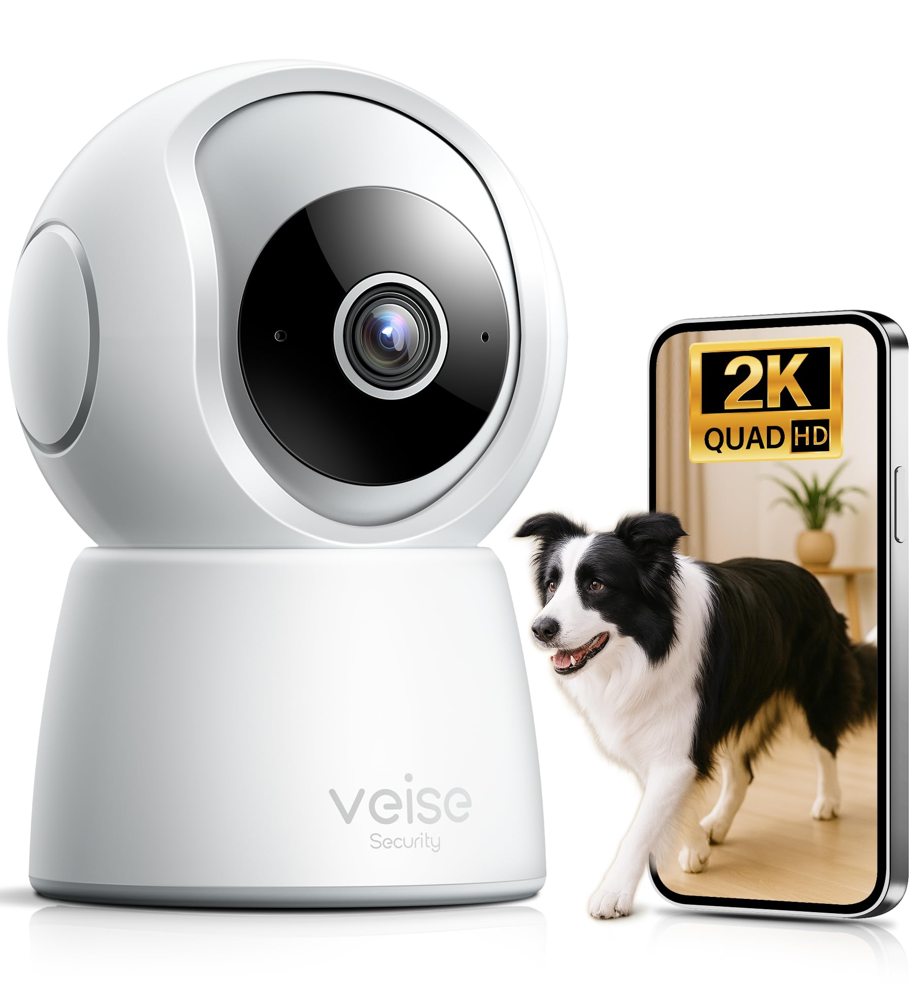 Veise 2K Security Camera Indoor 2.4GHz, 360° Pan/Tilt Cameras for Home Security, Pet & Baby Monitor, Motion Tracking, Voice Control, 2-Way Audio, IR Night Vision, Cloud &SD Card Storage, White