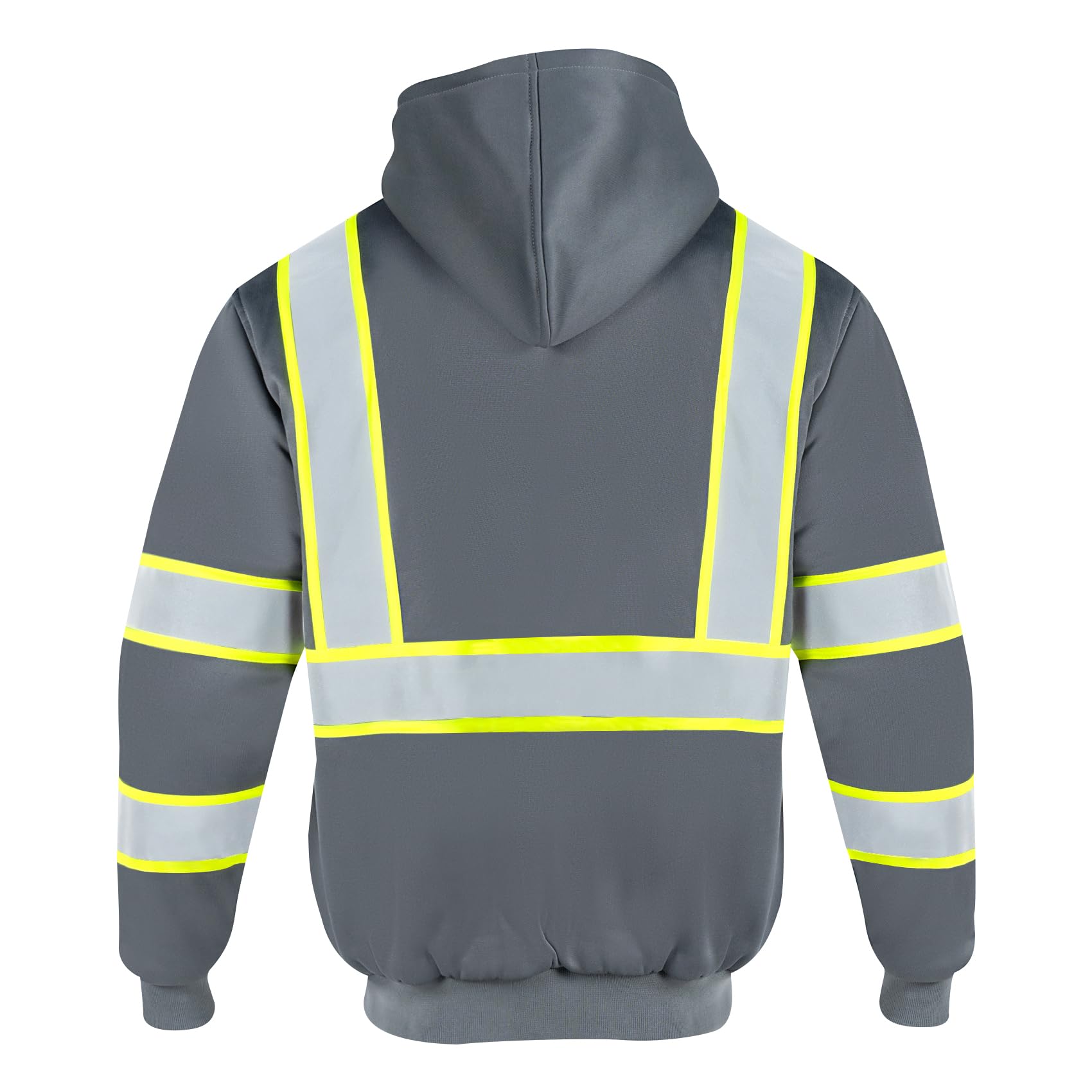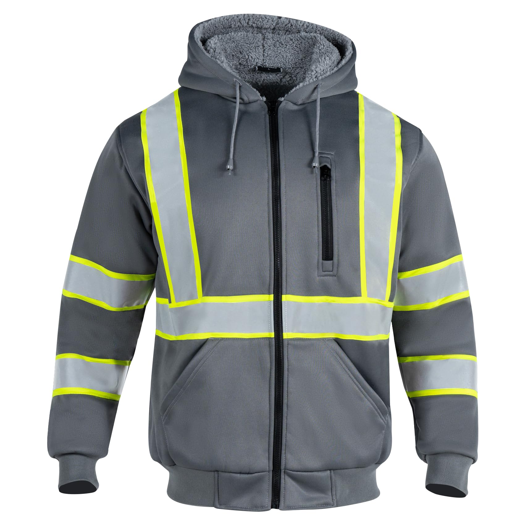 VENDACE Men's ANSI Class 3 High Vis Safety Reflective Sweatshirt Wool Fleece Zipper Jacket Hoodie (Grey,M)