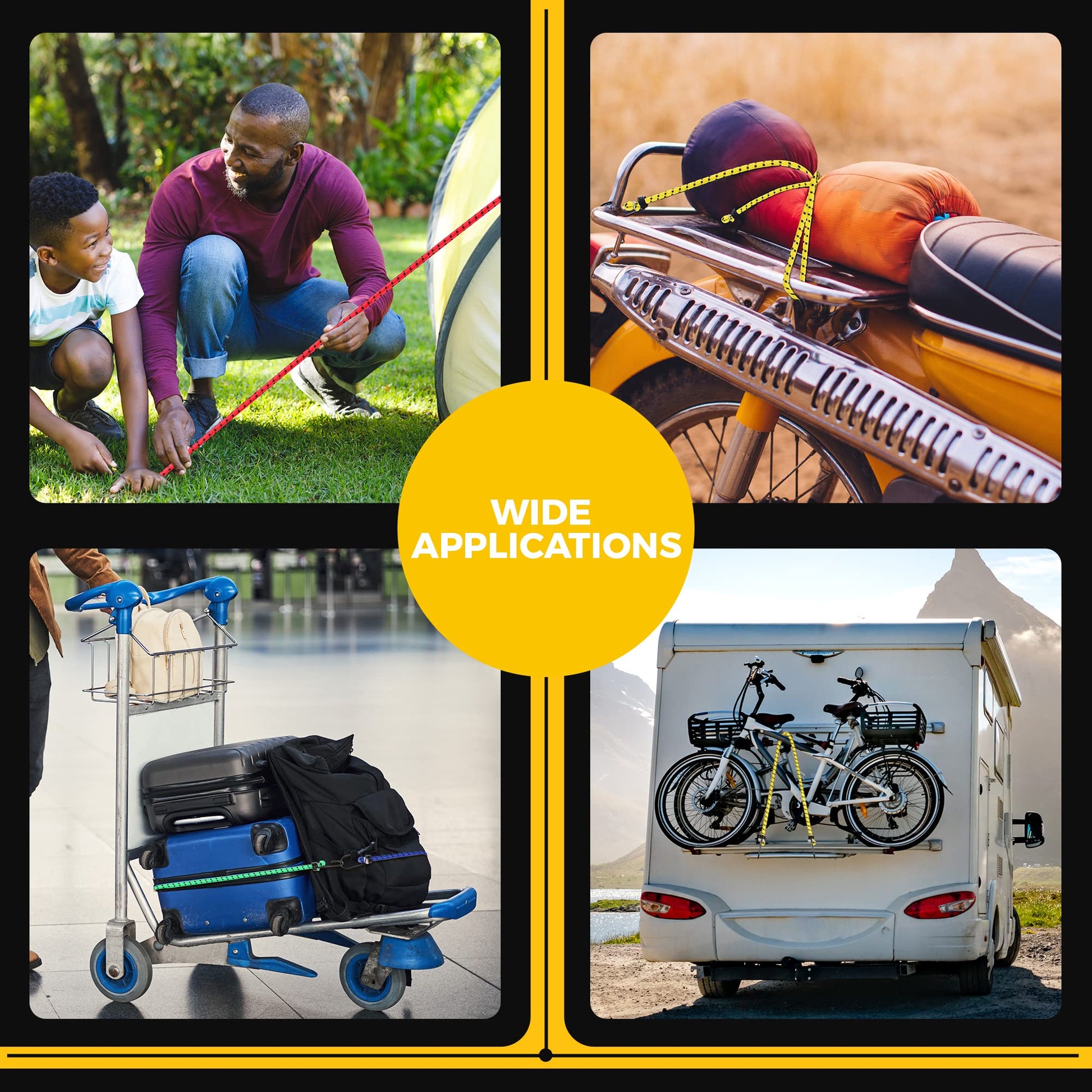 【Wide Application】: 2 colors and sizes make those rope been widely used ,such as packing for camping, tent, storing packages, fastening items on cars, trucks, trailers, motorcycles, bikes etc.