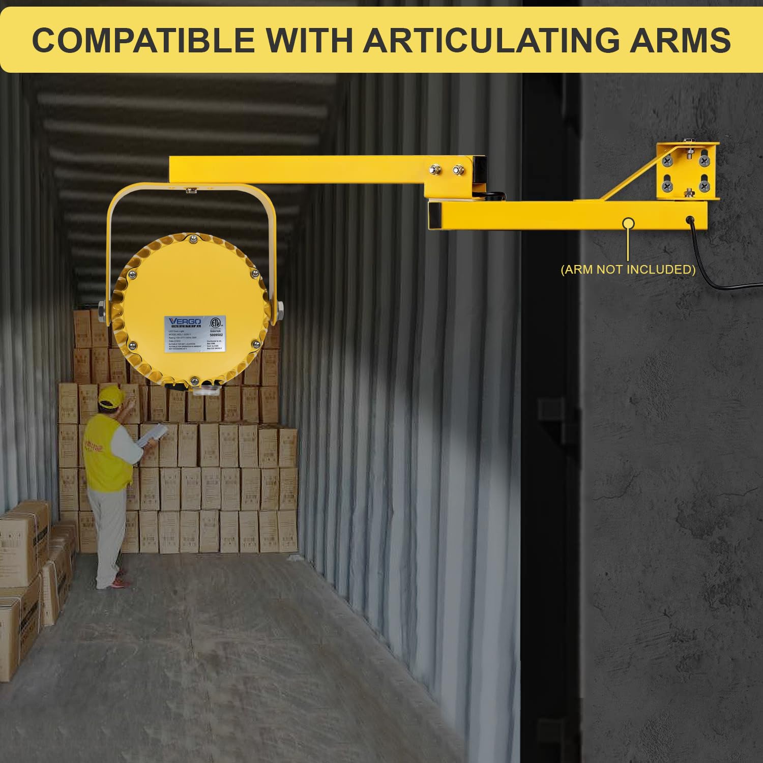 - BRIGHT AND POWERFUL – Vergo LED dock light is perfect for loading and unloading at night or for seeing inside dark trucks and containers. Our powerful and bright LED dock light draws a small amount of power while putting out 3500 Lumens with a color temperature of 5000K.
