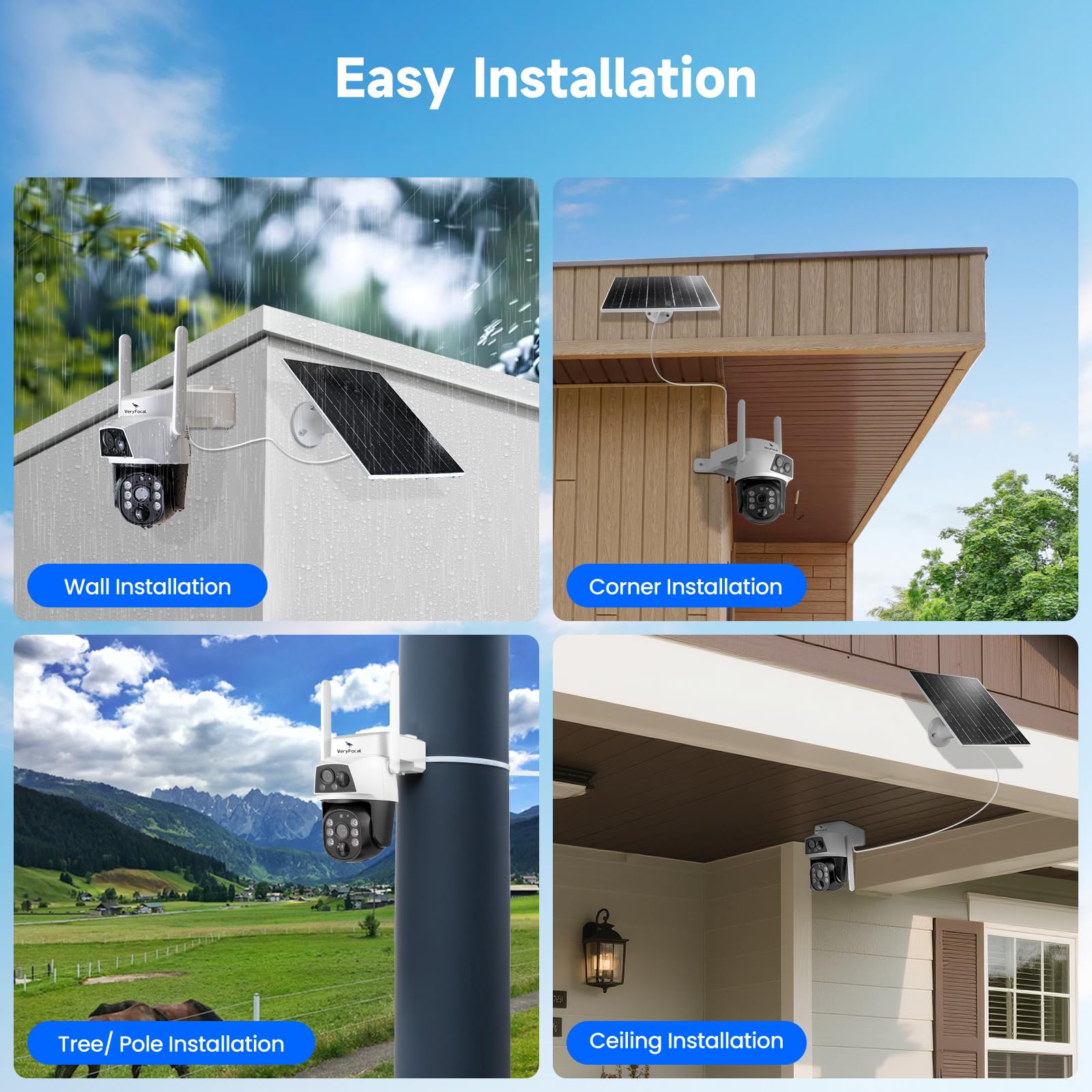 VeryFocal Dual Lens Solar Camera Wireless Outdoor, 2.4GHz/5GHz WiFi Connectivity for Home Security, 4MP QHD 360° PTZ Cameras, PIR Motion Detection, Color Night Vision, IP66