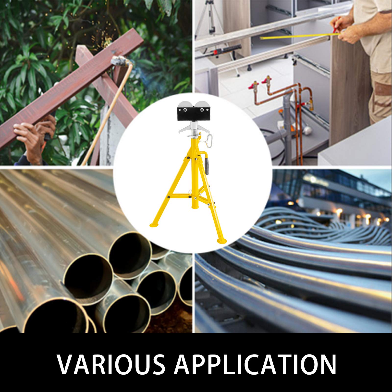 - Wide Application: This pipe stand is perfect for welding heavy pipes, shapes, solids, and rounds. It supports pipe threading, pipe hole cutting, roll grooving, and more.