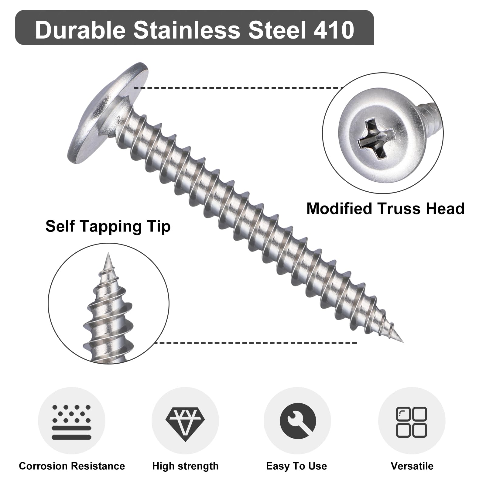 - Durable 410 Stainless Steel Material: 410 stainless steel screws are of great corrosion resistance, high strength, rust protection, no deformation, can be used for a long time. Twice as hard as copper, not be easily stripped. Stainless steel 410 is magnetic