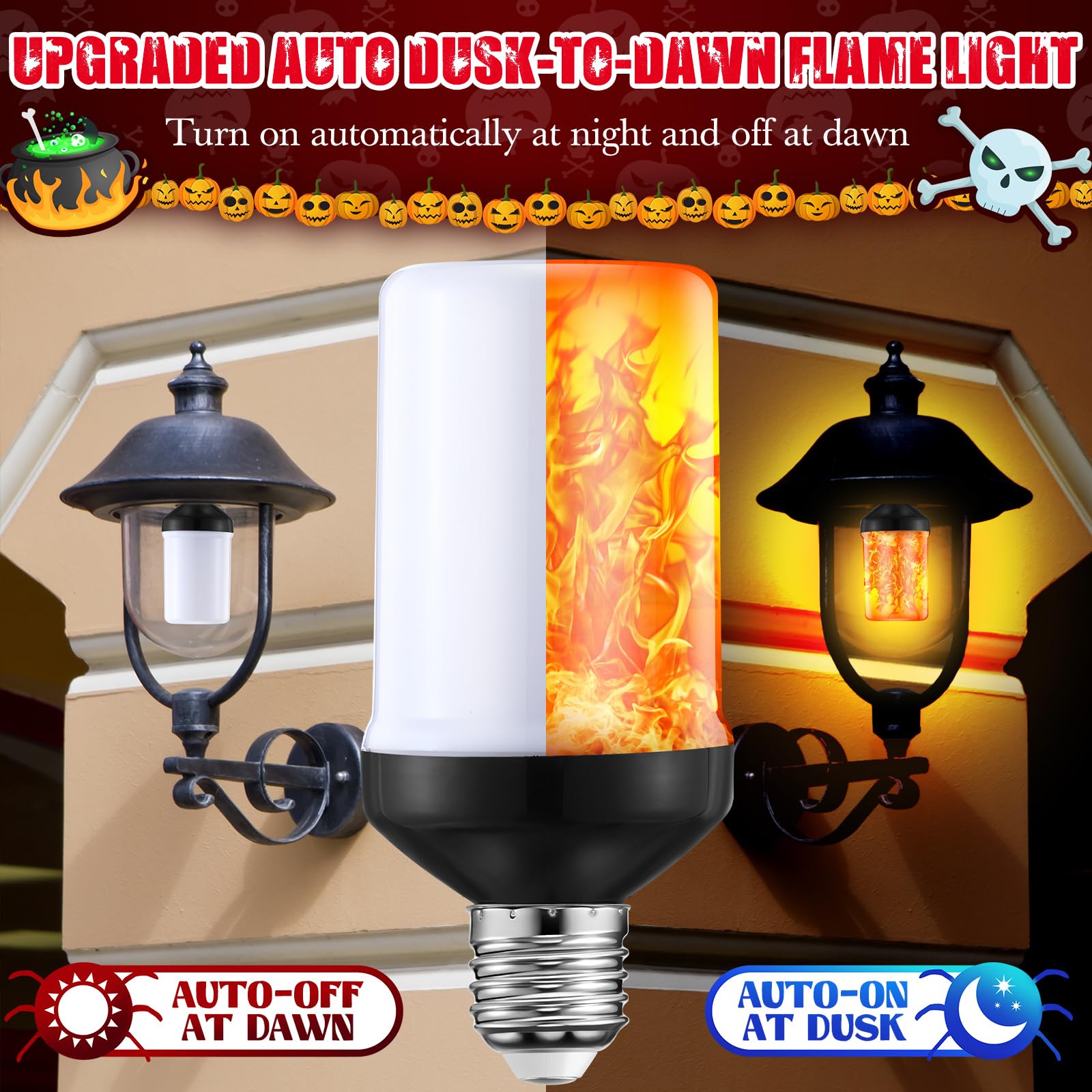 - 🔥Upgraded Dusk to Dawn Auto Sensor: Equipped with an upgraded light sensor, these dusk to dawn flame light bulbs turn on automatically at night and off at dawn; Just keep the switch on, and the flickering light bulb will handle the rest, providing hands free convenience and energy efficiency; Works reliably even in low light conditions