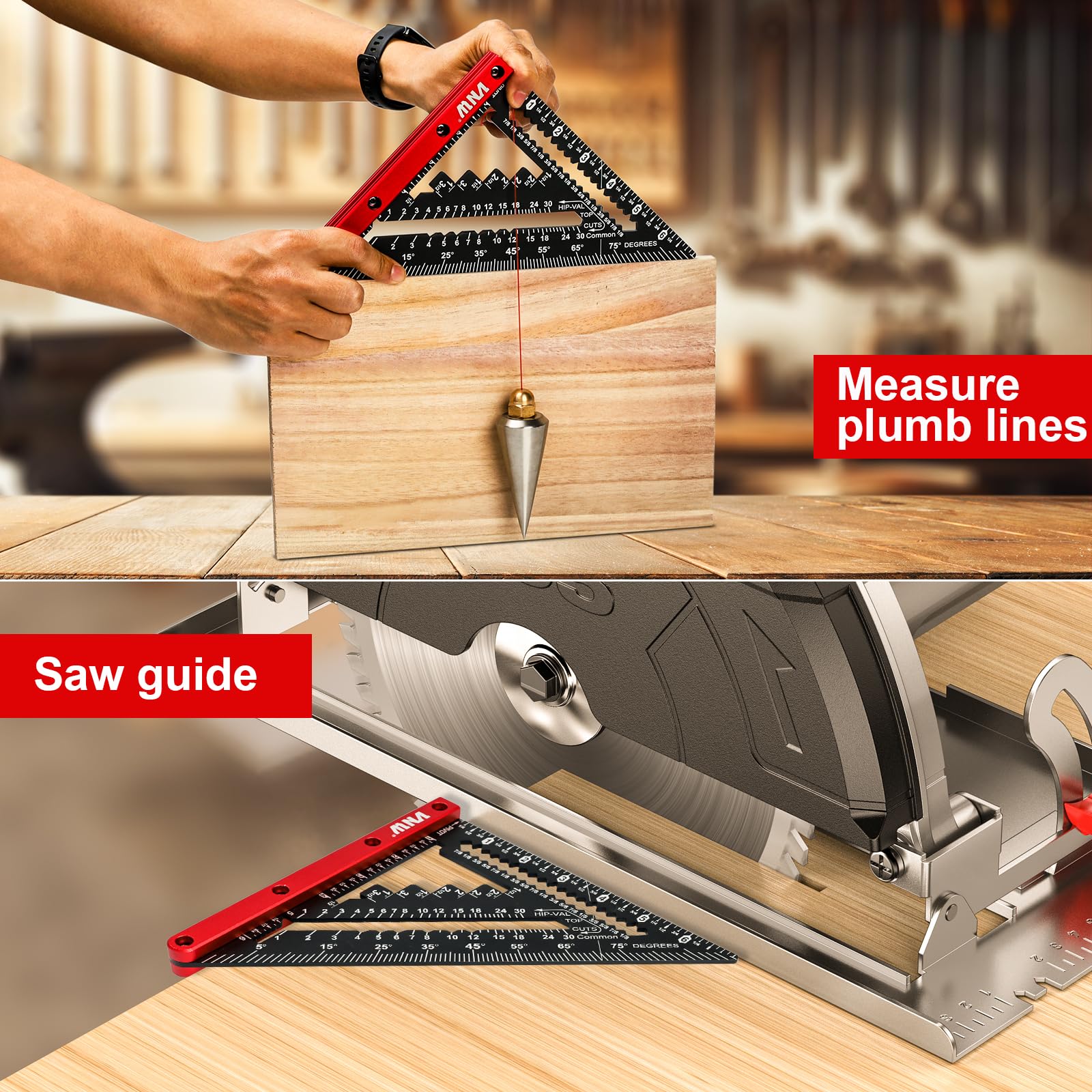 - 【Multi-function】It Functions as a rafter square for measuring and cutting roof rafters. This carpenter square is used as a try square, miter square, protractor, and saw guide in various carpentry and woodworking tasks