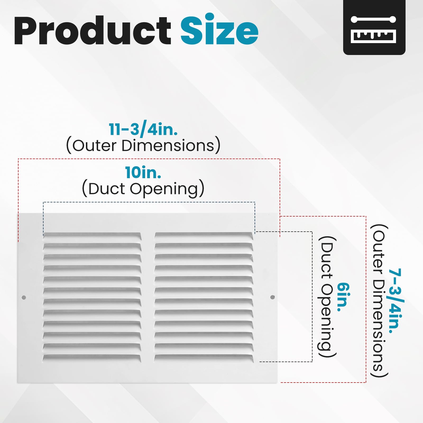 - How To Measure: This return vent cover fits for 10"x6" duct opening, the overall size of the vent cover is 11.8"x7.9".Please remove the old vent and measure the ceiling/wall hole size to chose the right one. Tips: Please carefully read the size information and verify it before placing an order!!!