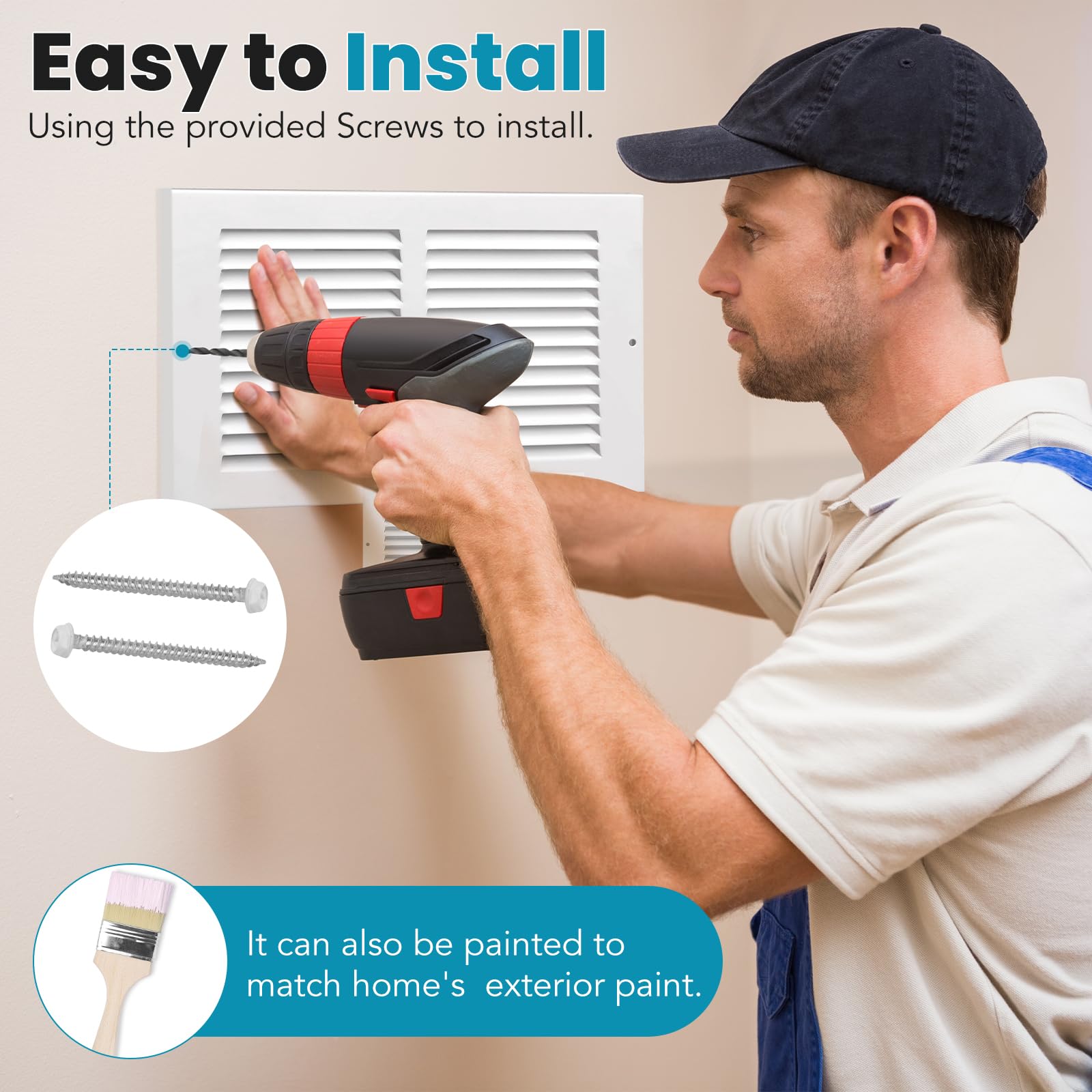 - Esay to Install: Installing this hvac vent covers is a breeze.It's also easy to remove and clean. Package contains predrilled holes and 2 white headed screws.Just need simple and straightforward setup and your will get a better household air quality.