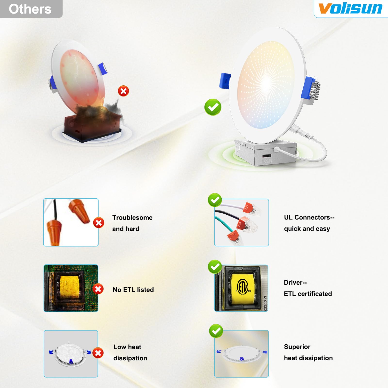 - 【Trustworthy】 The recessed ceiling light 7 inch is IC rated,meaning the junction box is thermally protected. ETL/UL Certificated, the whole Volisun's recessed light fixtures is certified by ETL of a high standard , wire terminal is UL-certified.