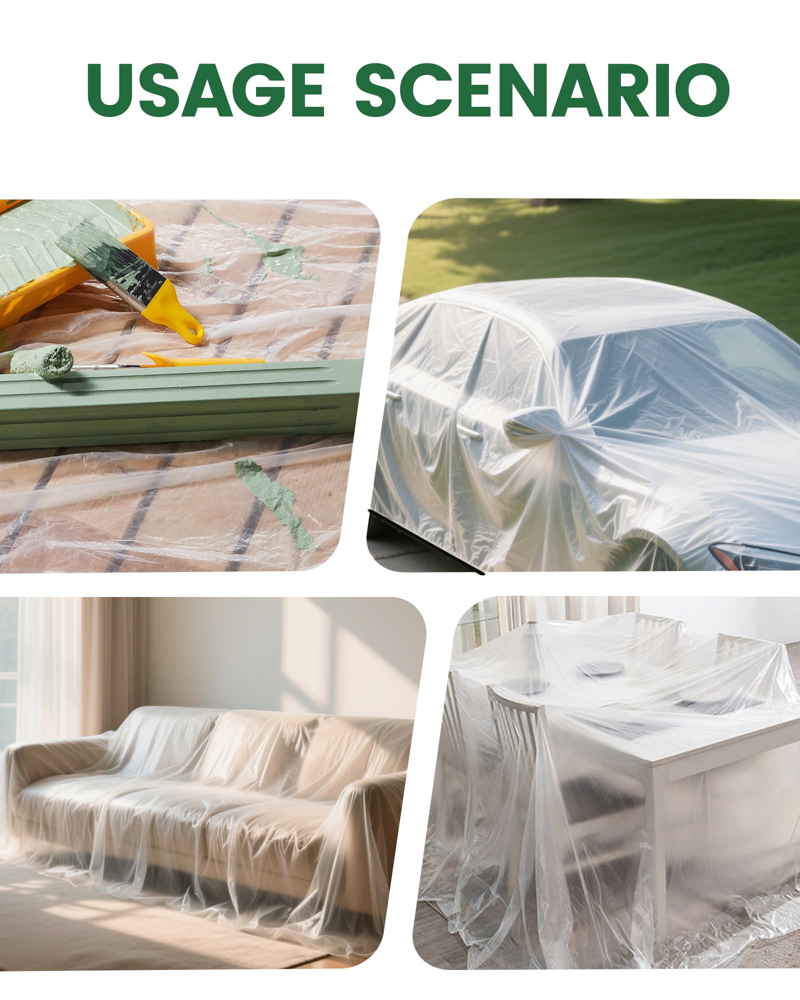 Voomey 6-Pack Plastic Drop Cloth 9x12 Feet - Waterproof and Clear Drop Cloth for Painting Sheet - Plastic Sheeting - Furniture Protection, and Floor Covering