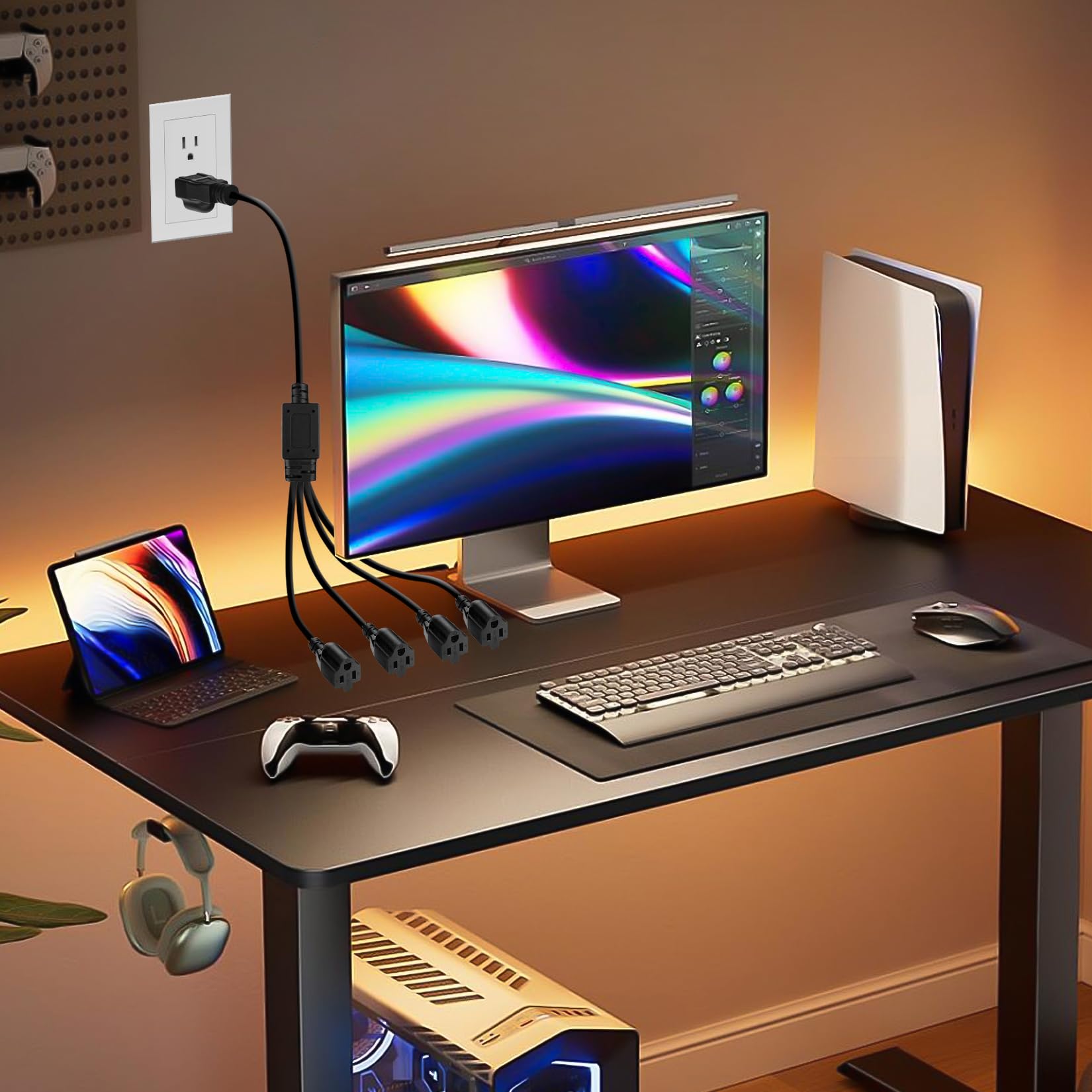 - Simple well-made high quality cords with polarized socket ,1 to 4 splitter USA Outlet Saver Power Extension Cord Cable 3-prong Outlets for NEMA 5-15P to 4 x NEMA 5-15R.