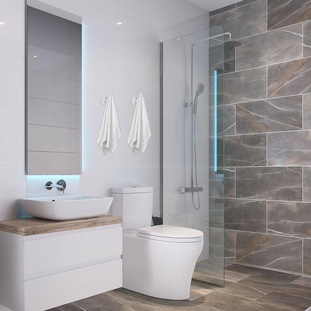 - 【Heavy Duty】The towel hooks adopt strong self-adhesive backing, which has strong adhesion and high load-bearing capacity, ensuring quality and service life. The hidden design of adhesive hooks will not damage the wall, which makes your wall clean and sturdy.