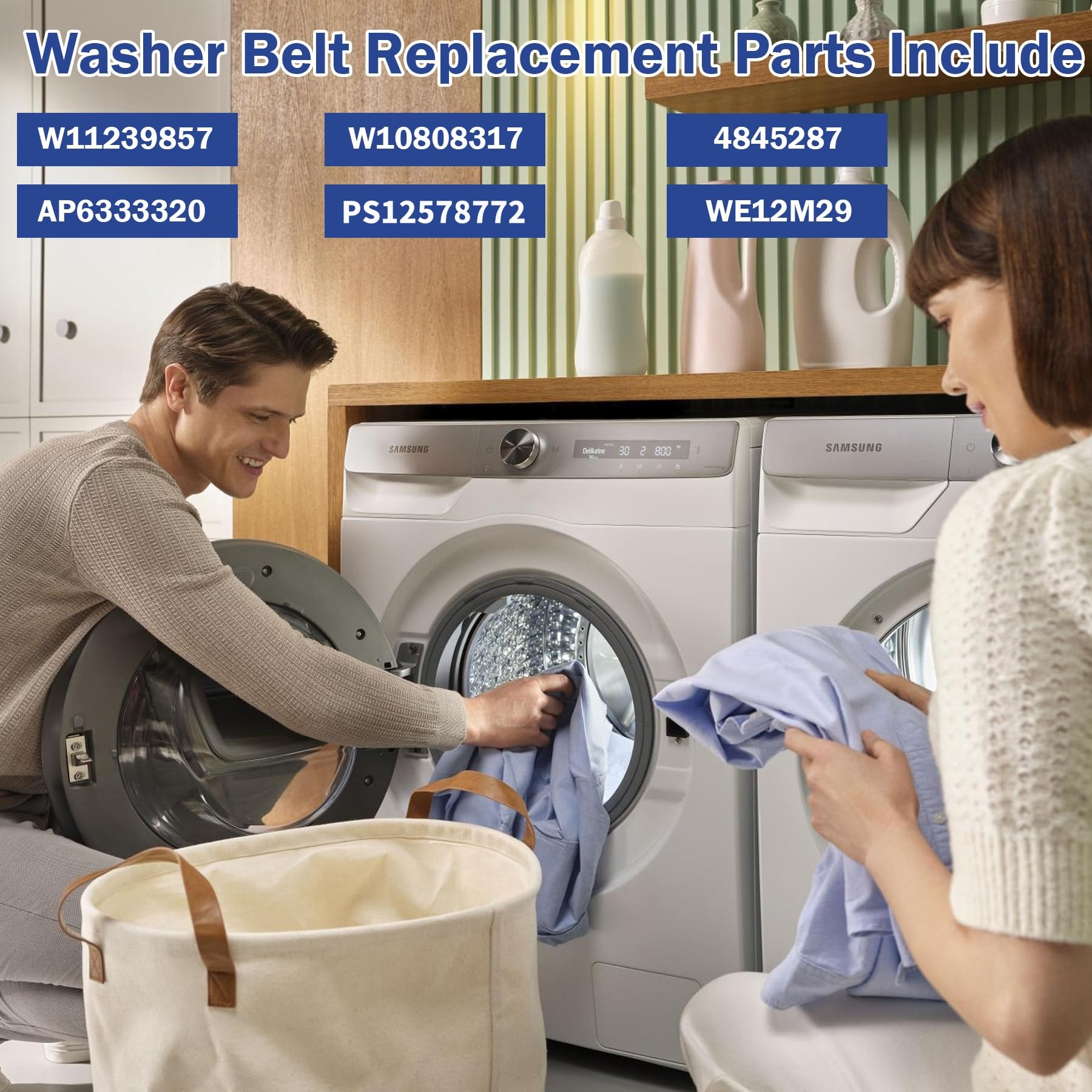 - Replacement Parts: Washing machine belt can replace the following part numbers: W11239857, W10808317, 4845287, AP6333320, PS12578772, WE12M29, 5EPJ556. Easily resolve the following issues: excessive noise, extremely slow rotation or cessation of agitation, worn or damaged washing machine belt, or a burning odor.