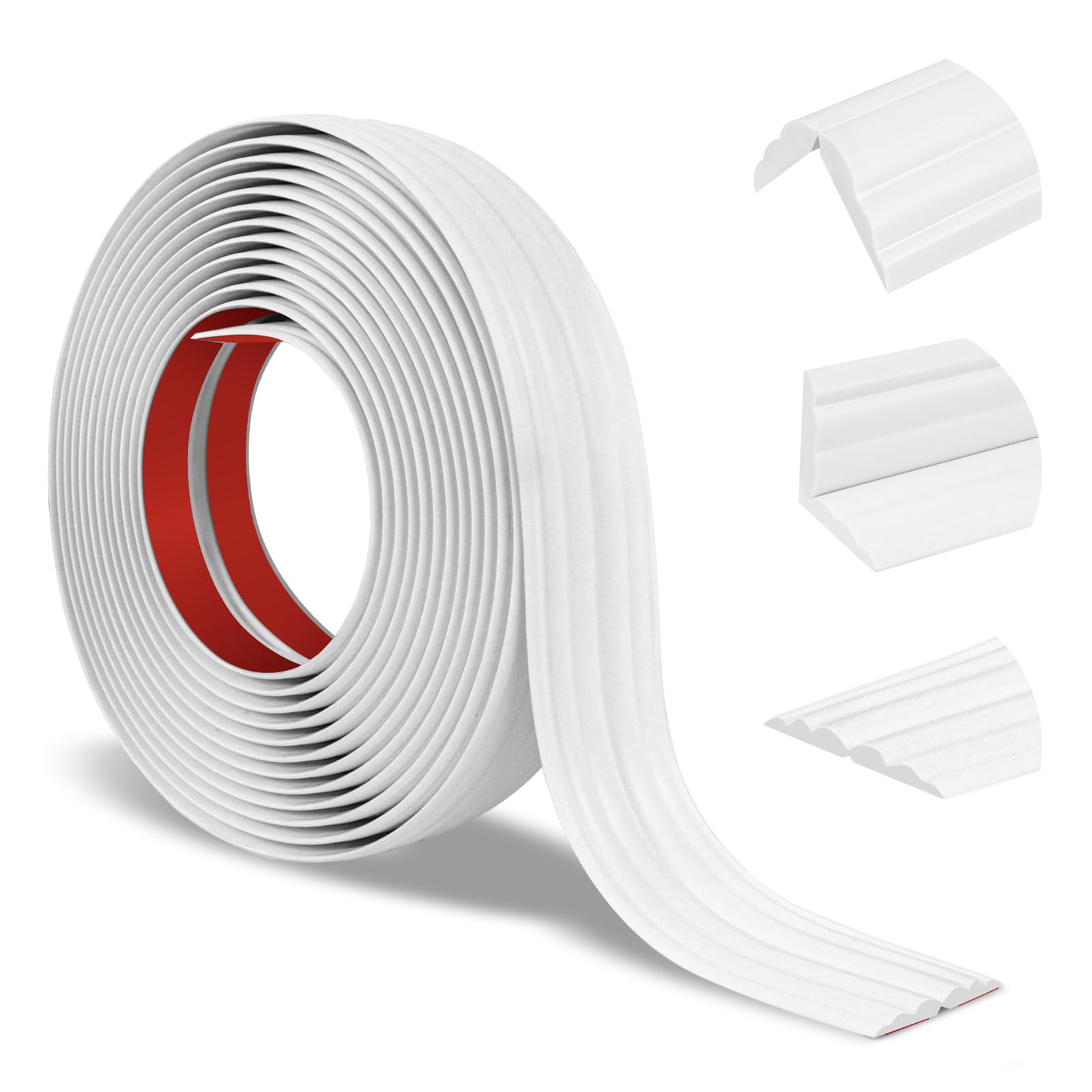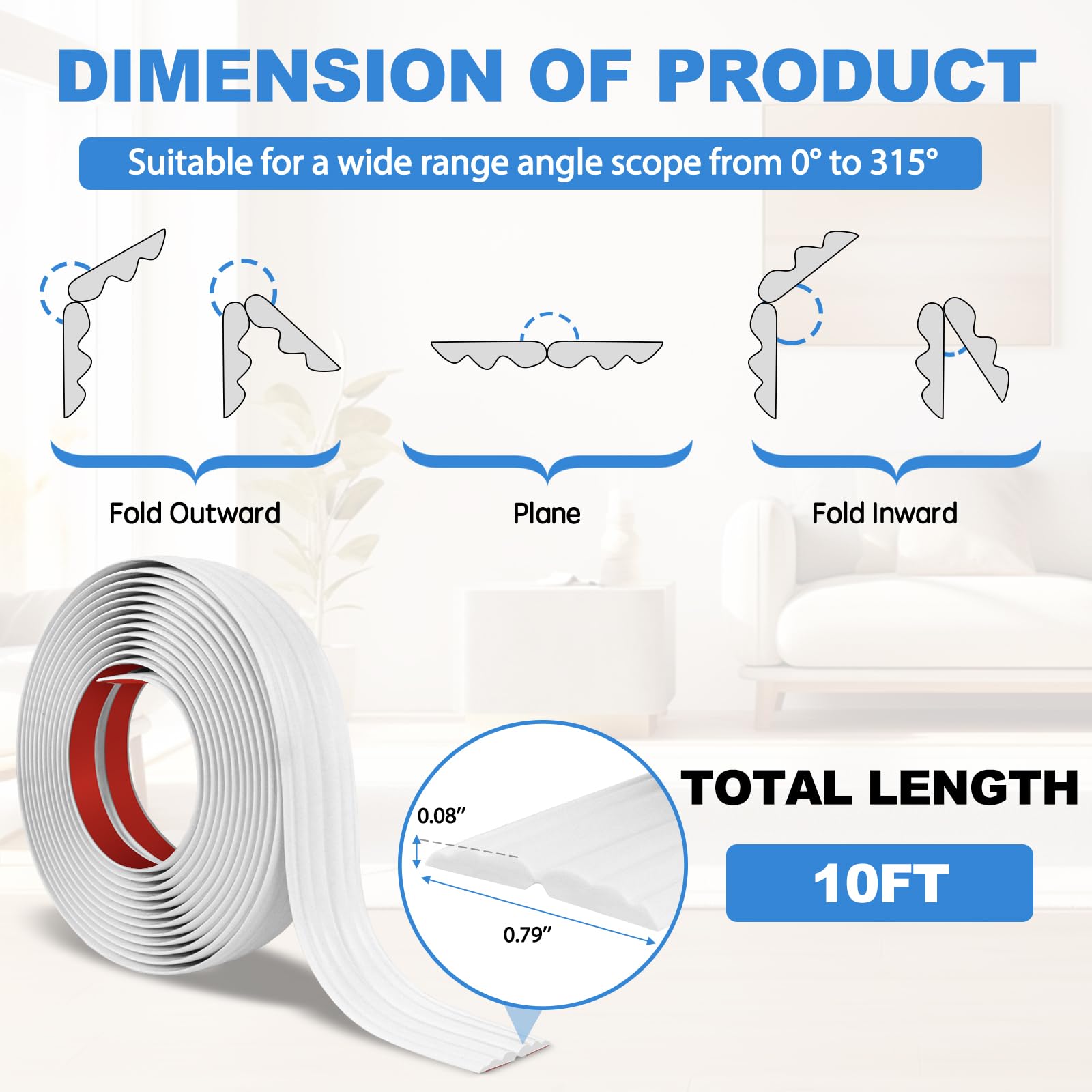 Wall Corner Protector Peel and Stick Corner Trim Molding Flexible Inside & Outside Wall Edge Guard Self Adhesive Moulding Trim for Edge Use, White, 0.8” W x 10’ L