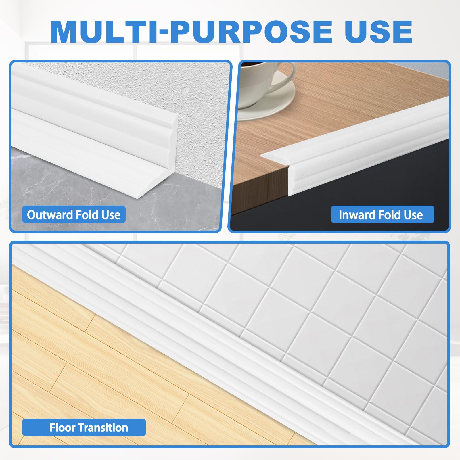 - Flexible Design: The corner molding trim can be adjusted to different angles, allowing for inward or outward flipping of 0-315 degrees as well as flat installation. As a result, it can serve various functional needs such as wall corner protection, sealing strip, floor transition strip, and table corner protection.