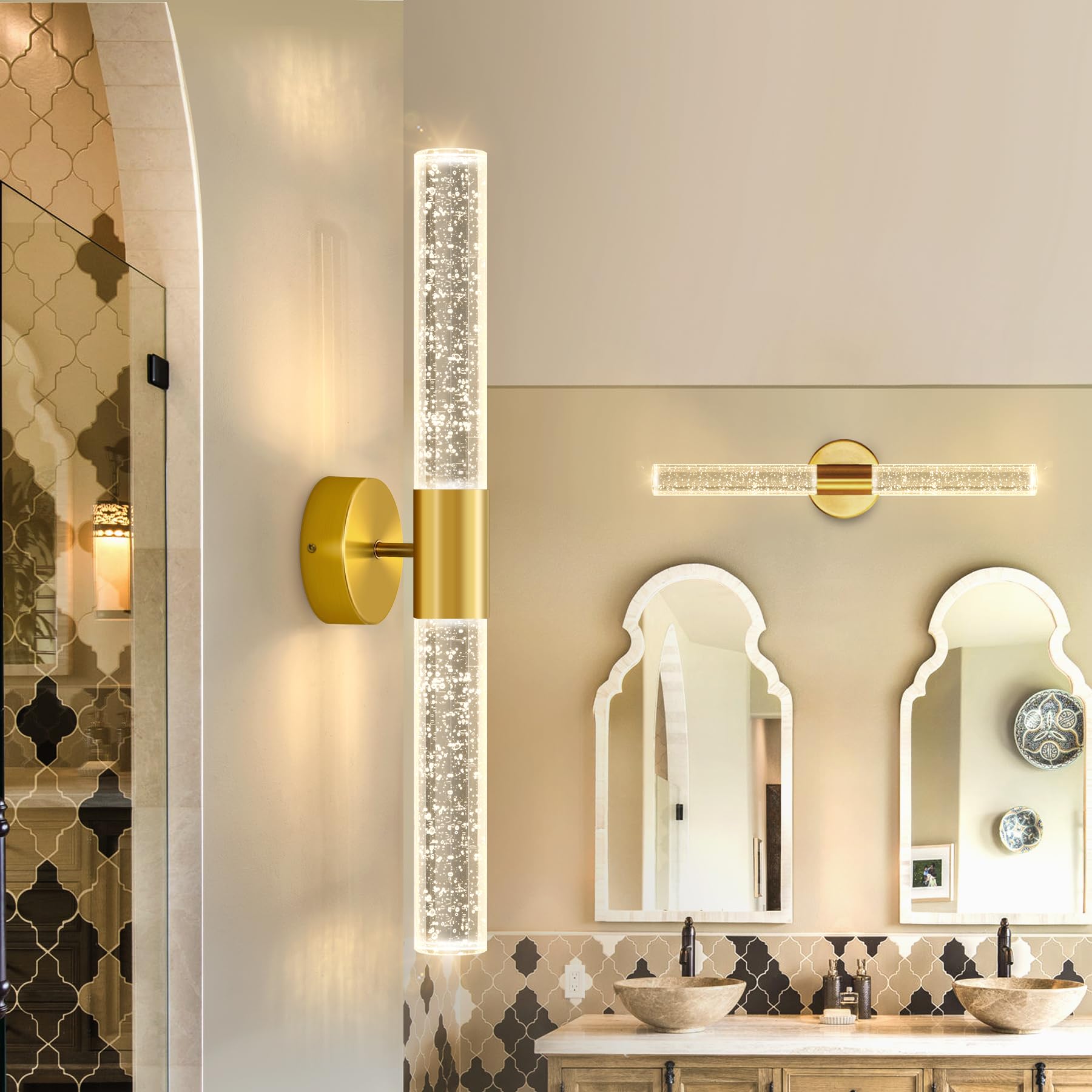 - Superior Quality Bathroom Light Fixtures - This sconce wall lighting is all crystal design with cylinder design, have outstanding light transmission performance. 3000K warm light LED bulbs bright up to 1200 lumens