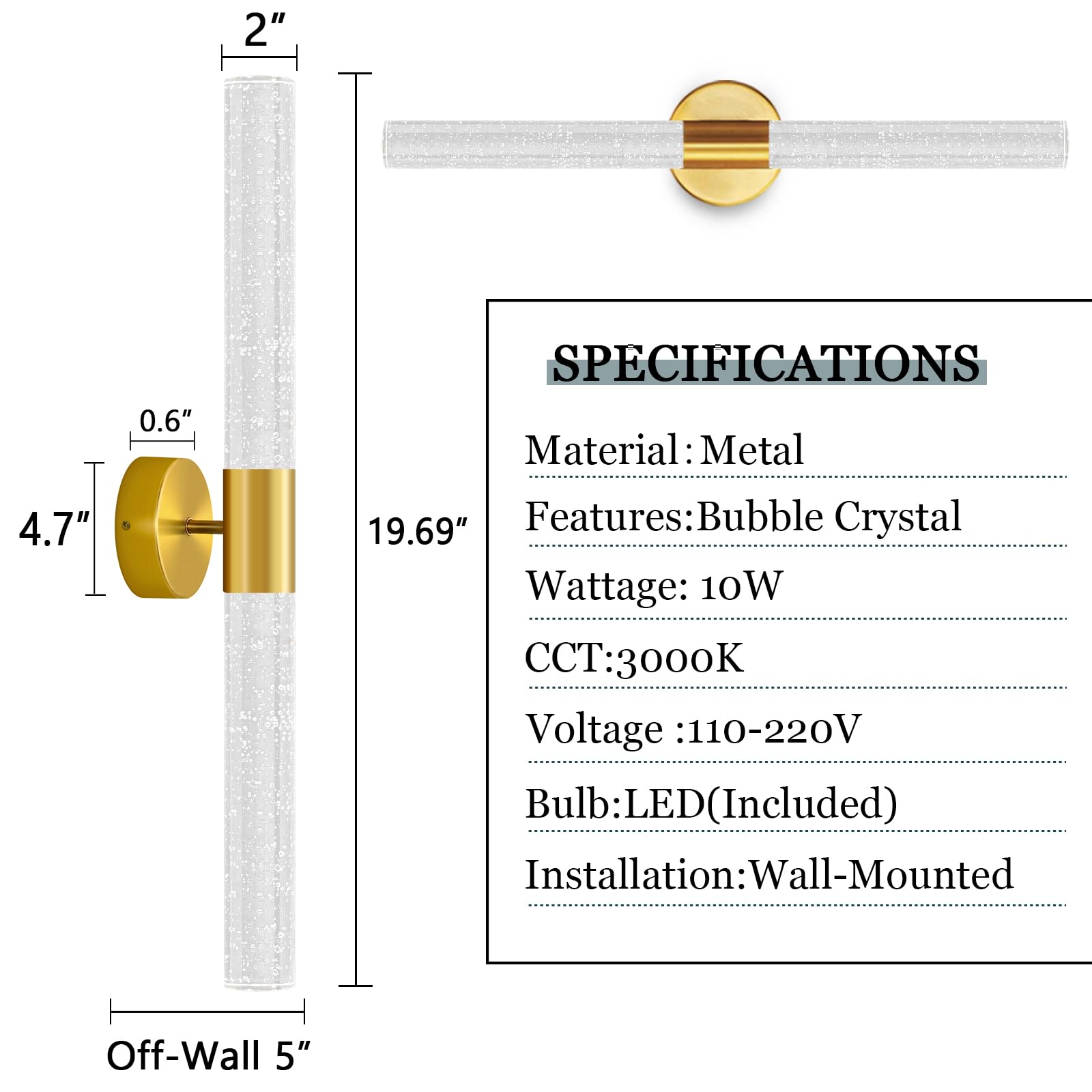 - Energy Saving & No Flicker LED Wall Sconce - The wall sconces used built-in 10W LED chips, equal with more than 120W halogen bulb. Compared to traditoinal light bulbs, led gold wall light saves up to 80% electricity, lifespan up to 50,000 hours