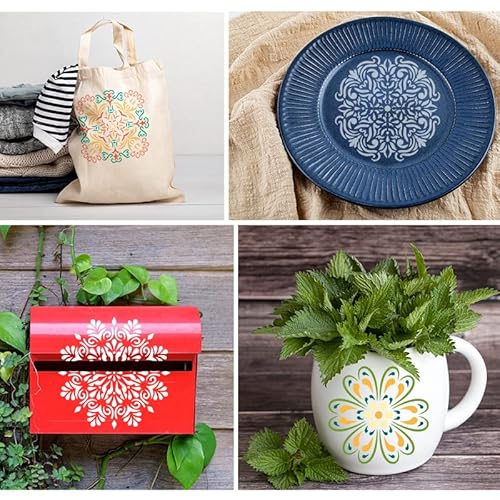 - ??Usage scenarios: Our mandala stencils come in three sizes: 4, 6, &12 inches, and they are suitable for various surfaces such as wall, wood, floor, furniture, fabric, and paper. As a result, you can use them in many different scenarios in your home, including decorating walls, wood board, floor, and wood furniture, or creating beautiful DIY projects.
