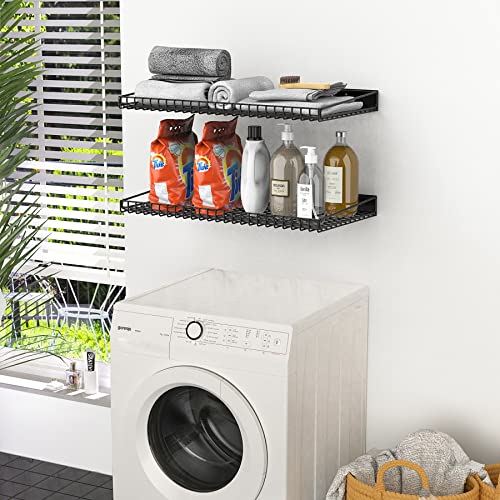 WALMANN 2 Pack Garage Wall Shelf, 23.5" x 12" Wall Mounted Storage Shelves for Garage, Closet, Laundry Room, Heavy Duty Wall Shelving, Holds Up to 65 lbs(Black)