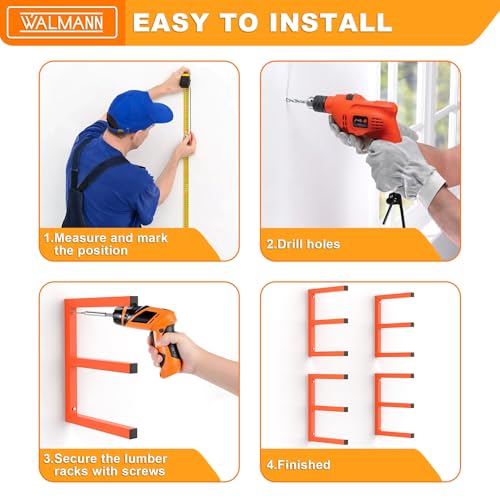 - Solid Construction: Lumber storage racks is made of good gauge steel and nicely painted, heavy duty and sturdy. All ends are plastic capped, no sharp edges. They can be easily installed into the studs to keep all your spare wood neatly. Holds up to 330 lbs(110 lbs/tier)