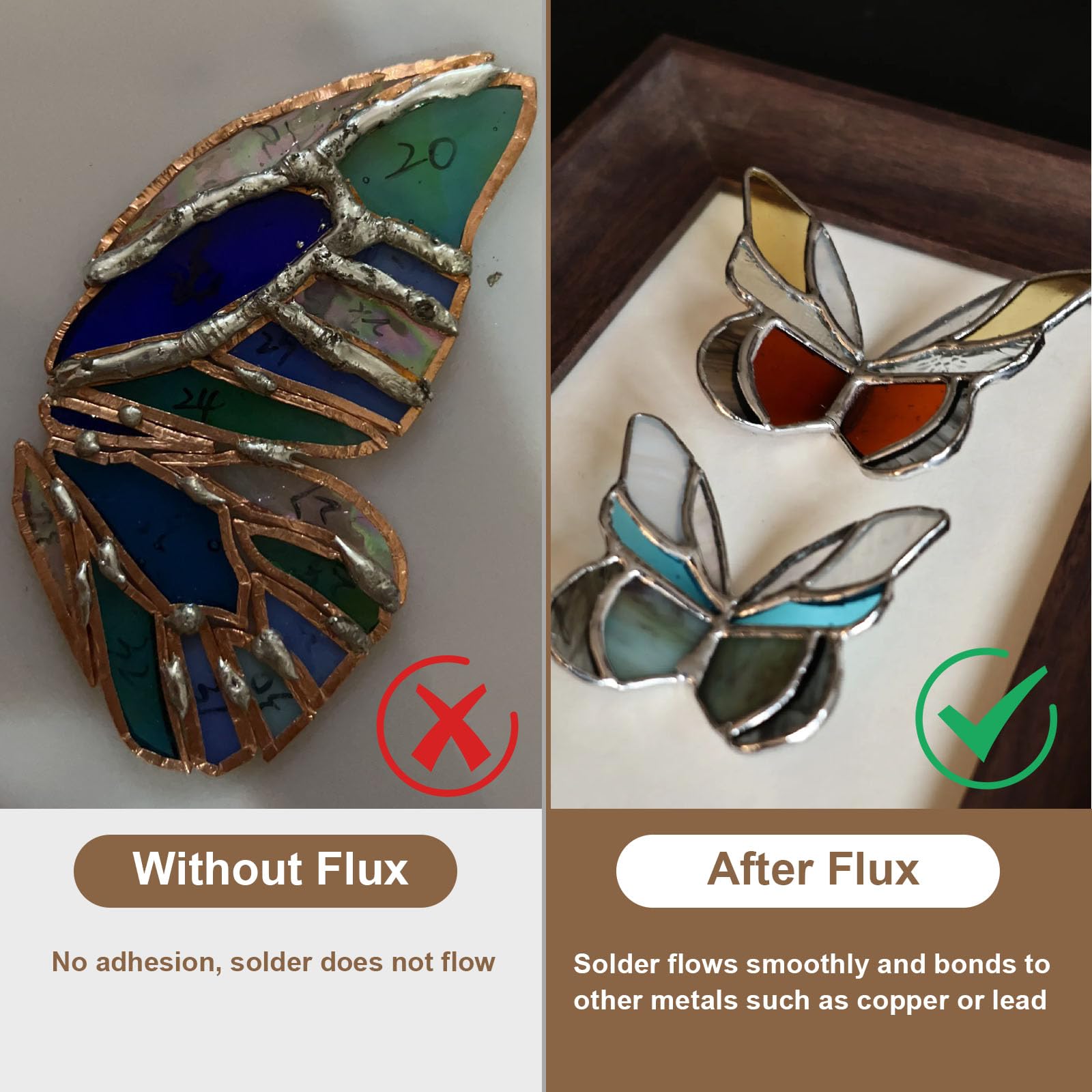 - Superior Flux for Any Stained Glass Soldering Job: Our instant acting flux prepares metals for rapid soldering and works well on any solder, copper foil, lead or zinc came. Its broad compatibility makes it a versatile tool for various welding projects.