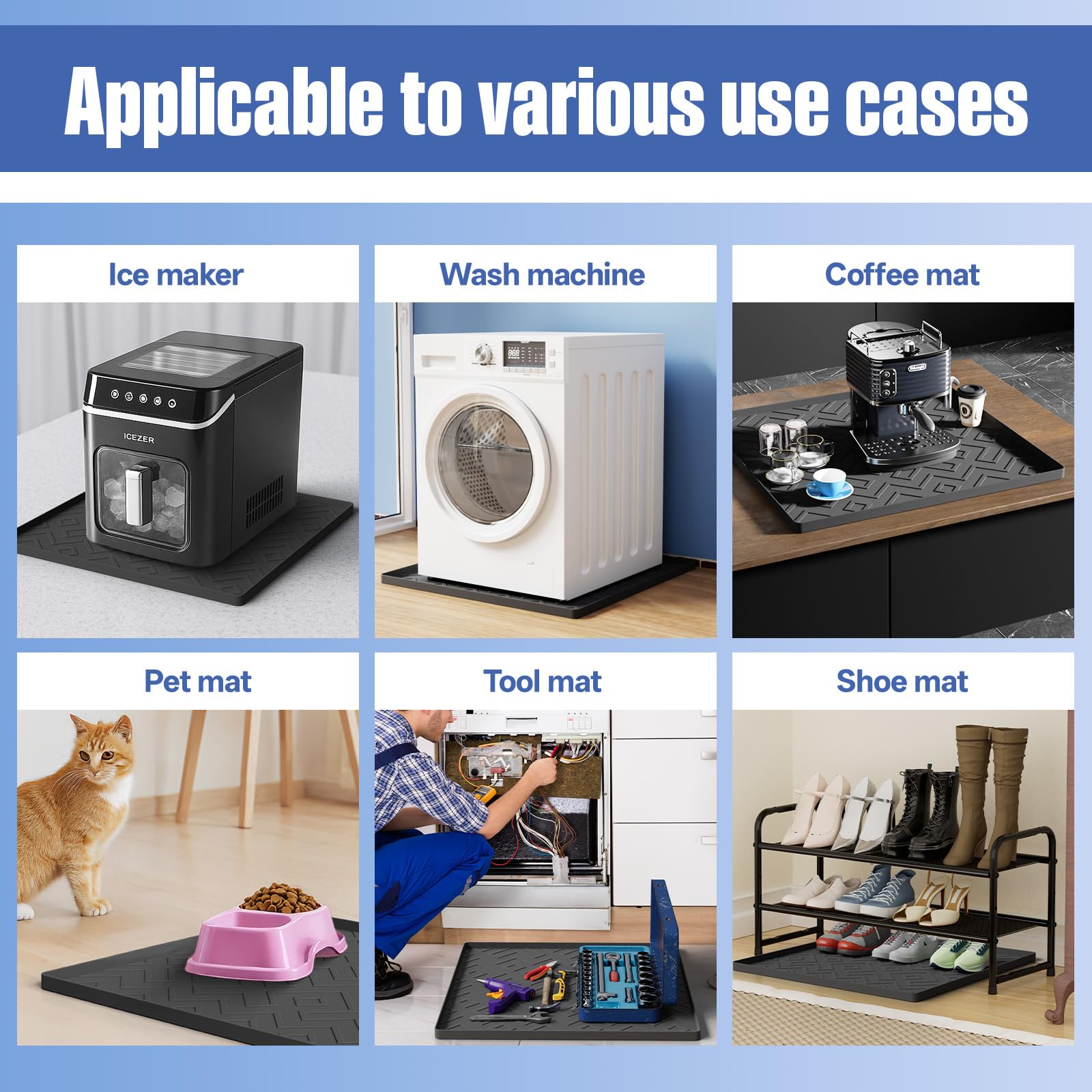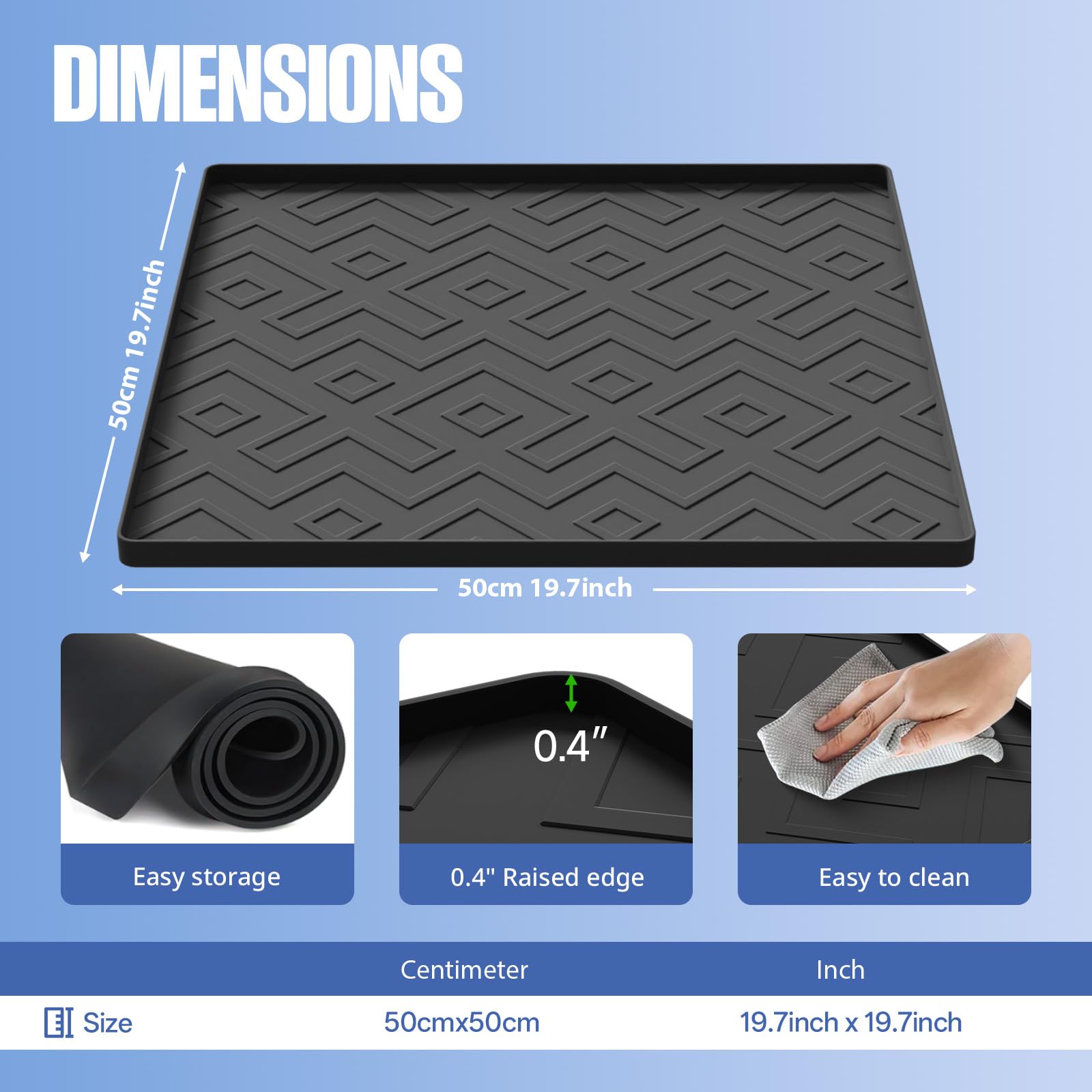 Water Cooler Mat – 19.7" x 19.7" Silicone Water Dispenser Mat for Floor & Countertop, Spill-Proof & Waterproof Tray for Coffee Maker, Kitchen, Pets, Office Use (Black, 19.7' * 19.7')