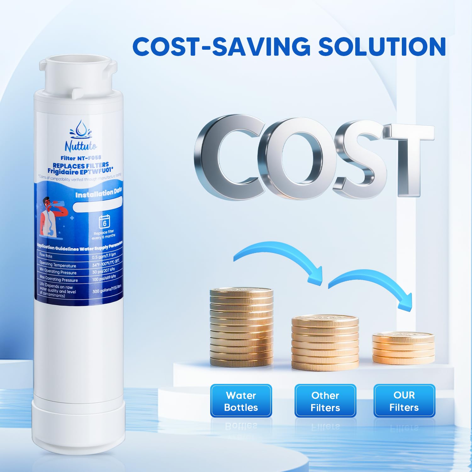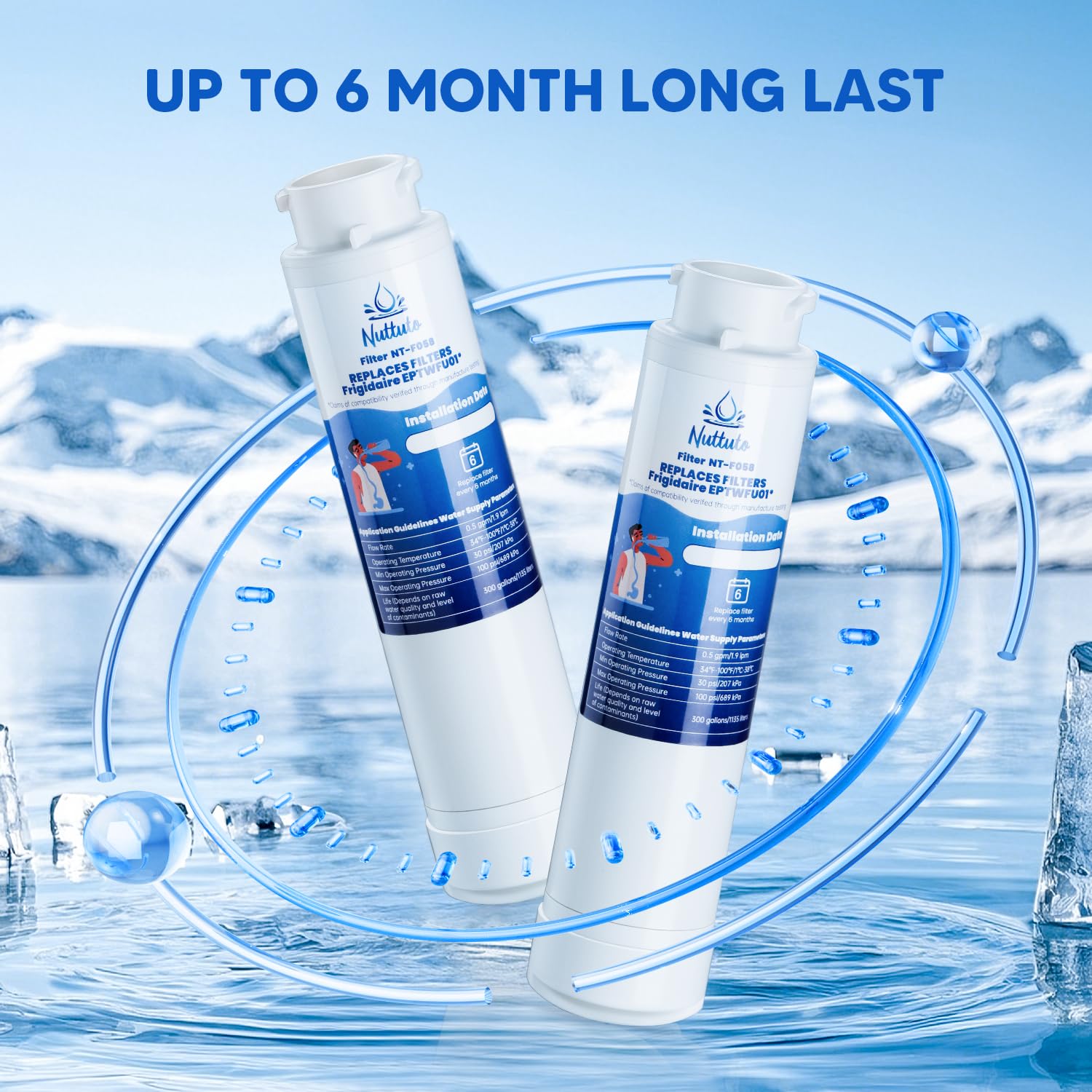 - EXCELLENT COMPATIBLE MODELS: NUTTUTO water filter replacement is compatible with Frigidaire EPTWFU01, EWF02, Pure Source Ultra II, 012505454226、4562222、807946701