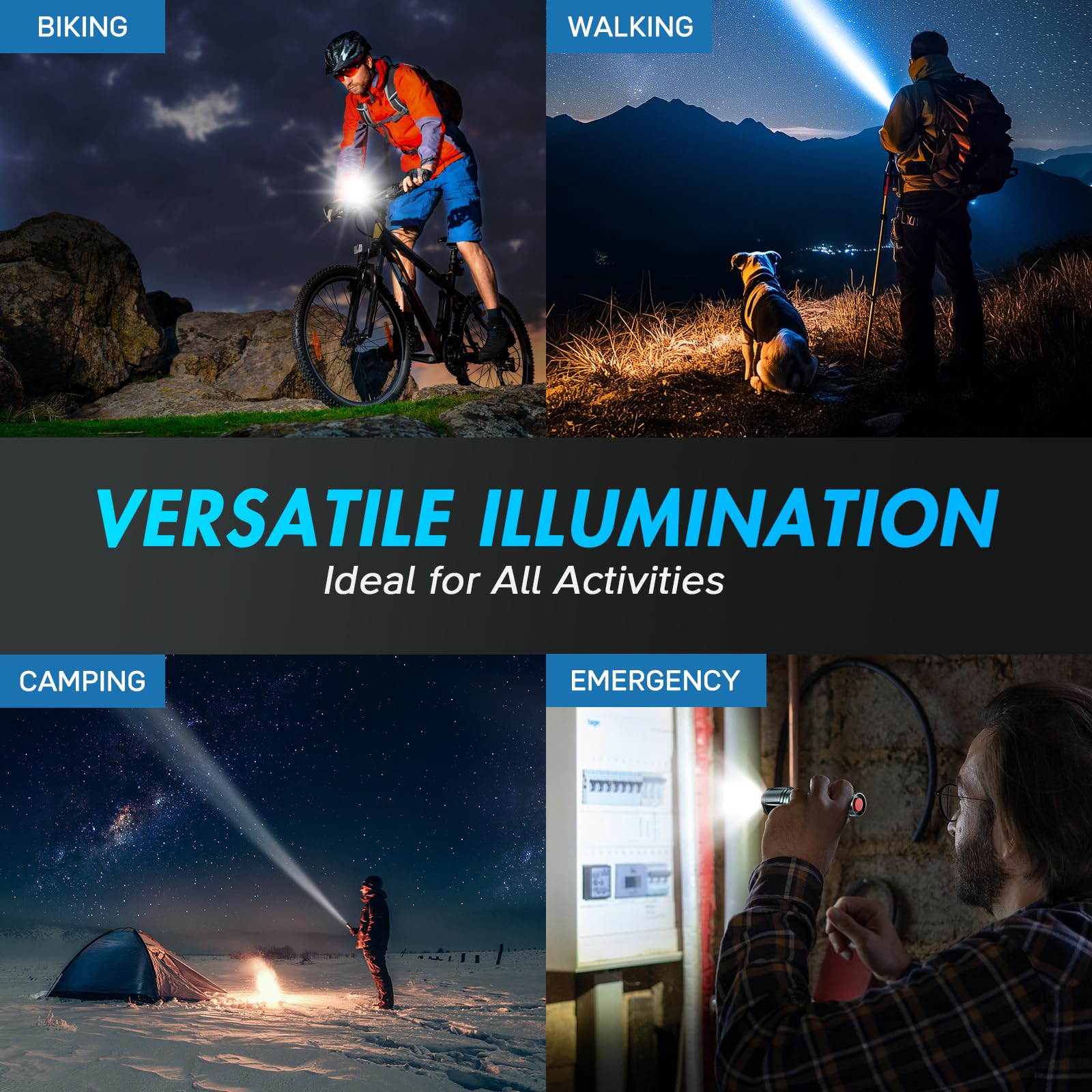- Compact with Perfect Size: Measuring length 5.12 inch, diameter 1.3 inch, the small flashlight can hold easily and comfortably. It fits well in your pocket, backpack, purse or car glove compartment. Very convenient to store, easy to carry and handy to use. Great Xmas stocking stuffers for guys or gals. Brightest flashlight for camping, emergency, dog walking, or hiking and every day use