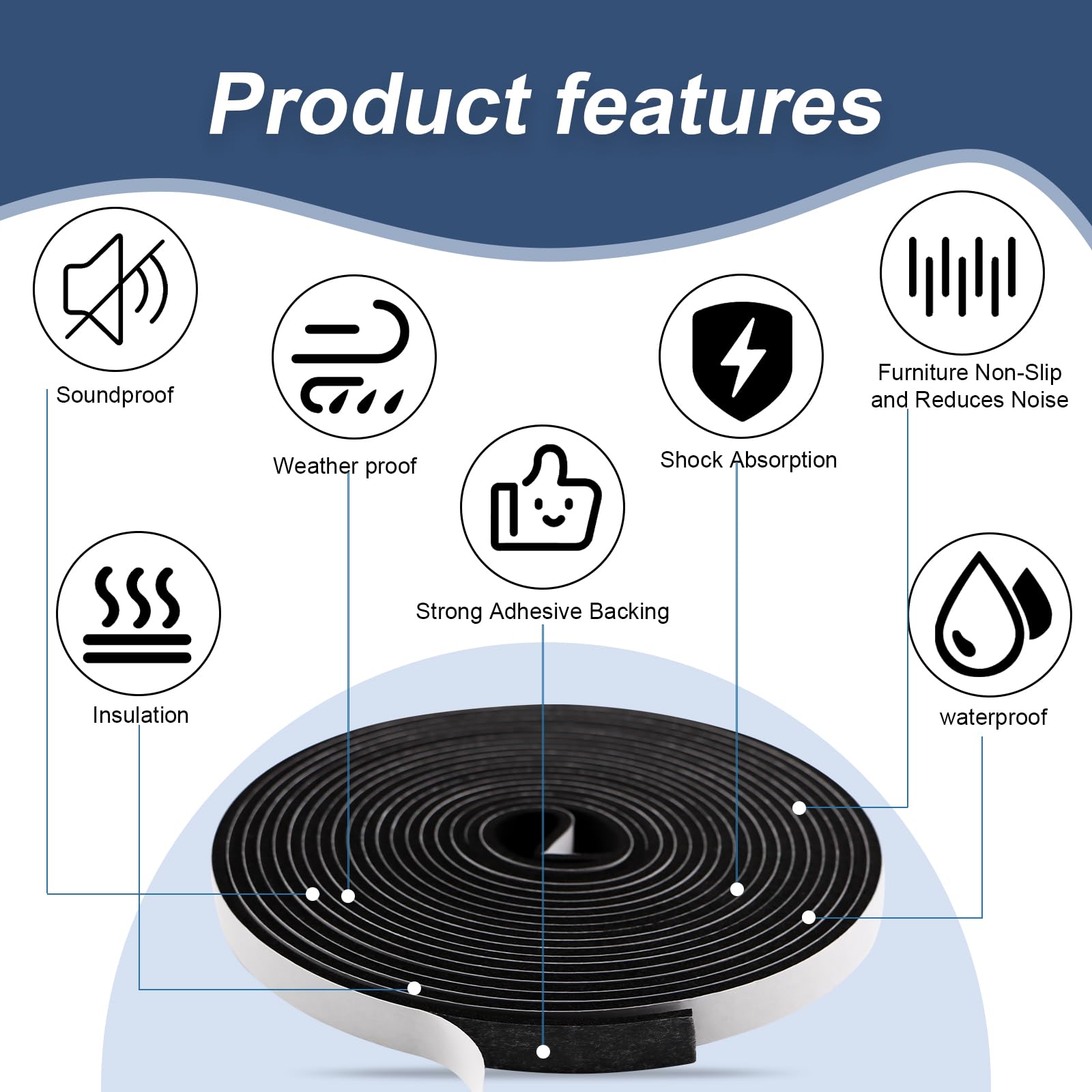 Details: Weather Stripping Door Seal Foam Tape for Doors Windows 1/2 Inch W x 1/8 Inch T 50 FT Strong High Density Foam Insulation Strips Adhesive Tape