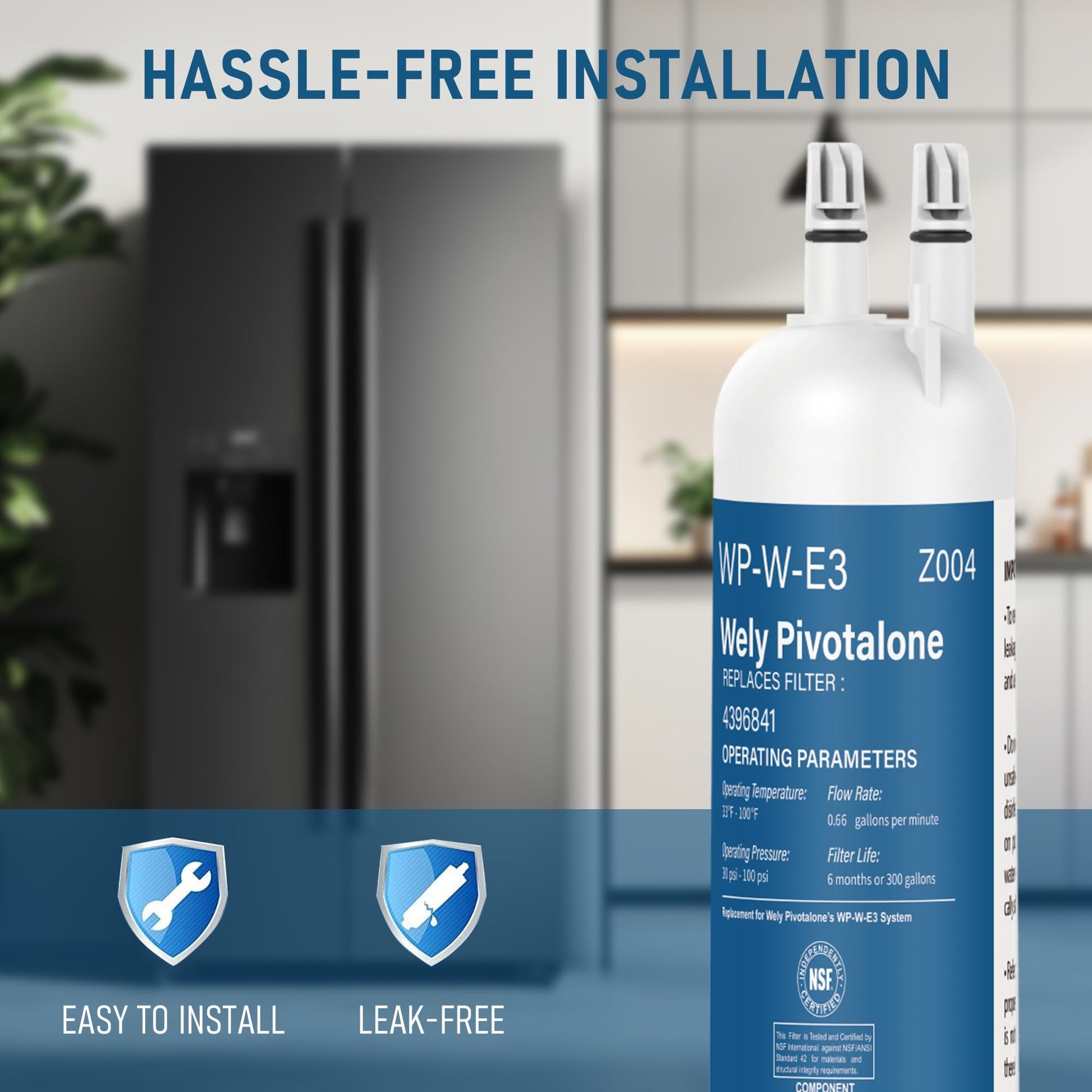 Wely Pivotalone WP-W-E3 Compatible with 4396841 Water Filter, EDR3RXD1, WHR3RXD1, KAD3RXD1, Filter 3, 4396841, 4396710, 46-9030, 46-9083, 9030, 9083, 3 Pack