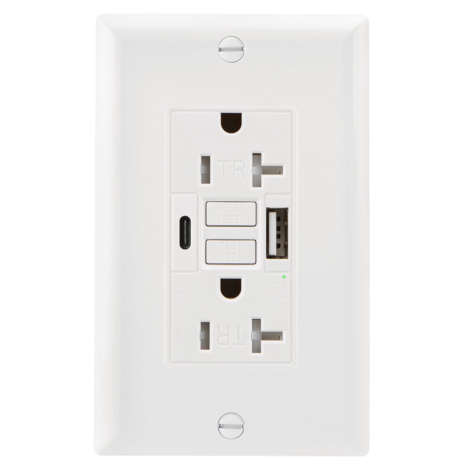 - Our GFCI receptacles with usb are made of high-quality thermoplastic materials, with a reasonable structural design to ensure excellent strength and durability, and provide continuous ground fault protection. Even when performing self-test, it can detect the actual ground fault and trip