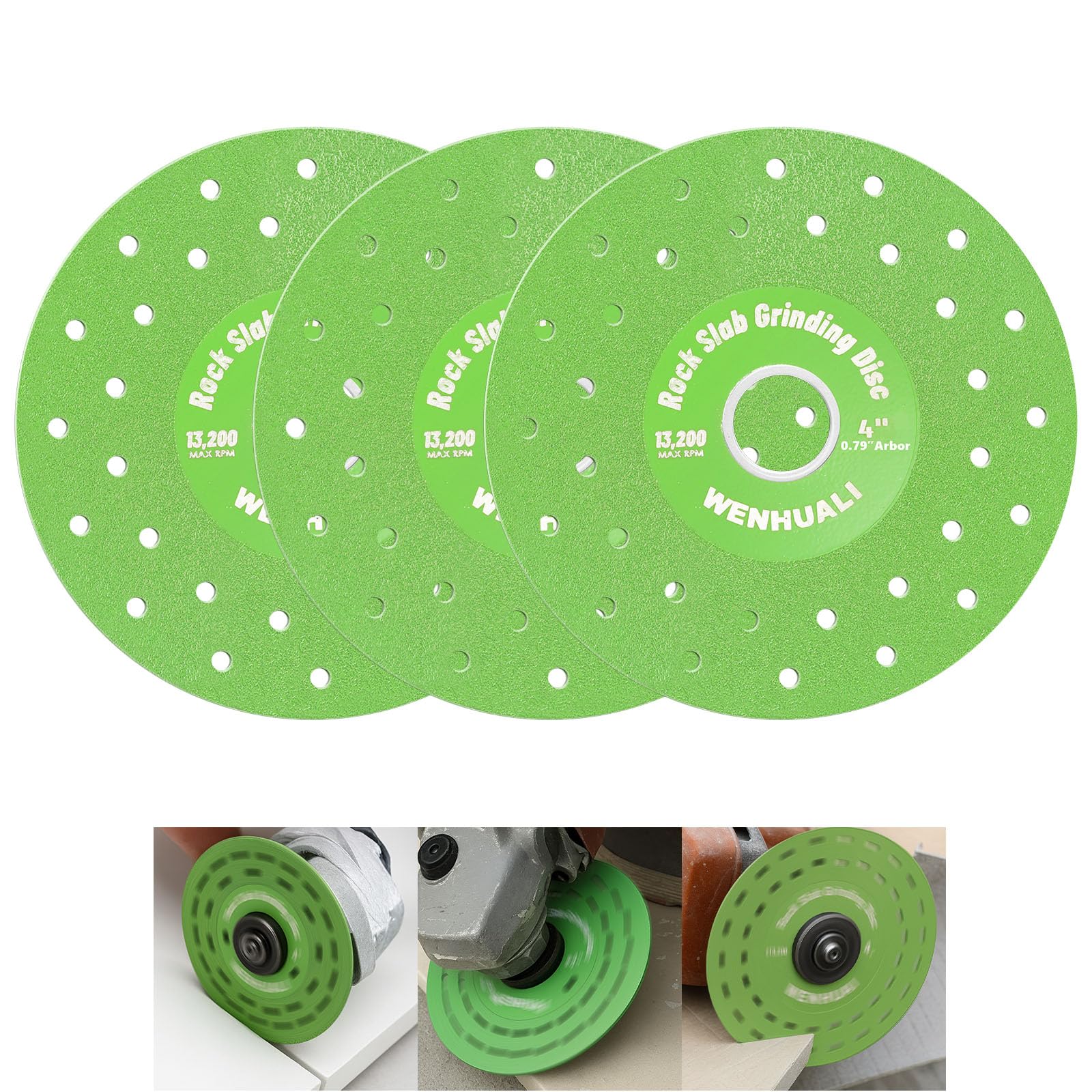 WENHUALI 4" Diamond Saw Blades, 3 Pcs Vacuum Brazed Ultra-Thin Multi-Pore Abrasive Rock Slab Grinding Disc for Tile Glass Marble Granite