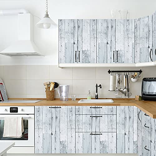 WENMER 17.71" x 118" Grey White Wood Contact Paper Wallpaper Wood Peel and Stick Wallpaper Self Adhesive Removable Wallpaper Vintage Wood Wallpaper for Countertop Cabinet Shelf Drawer Door