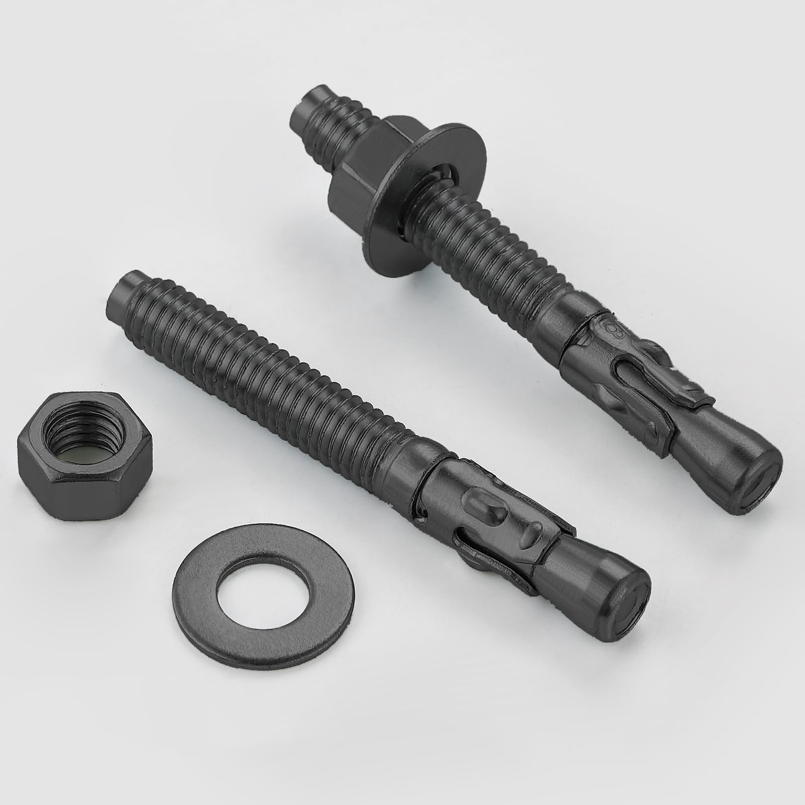 Wensilon 10Pcs 5/16x4 Inch Standard Fasteners for Heavy-Duty Black Wedge Anchors for Cement and Concrete