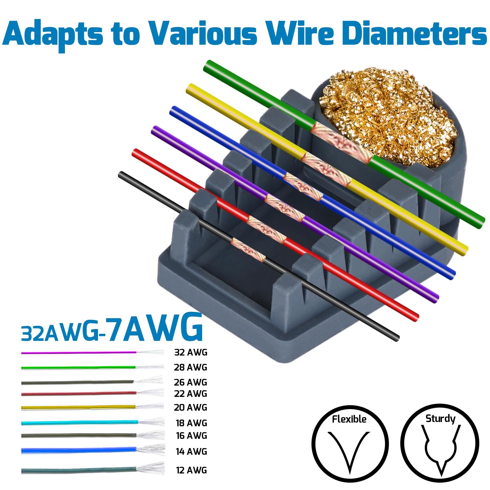- Helping hands for Efficient Wire Soldering: Features 6 V-shaped grooves; supports wide range of wire sizes from 32AWG to 7AWG; holds multiple wires at the same time to avoid changing back and forth