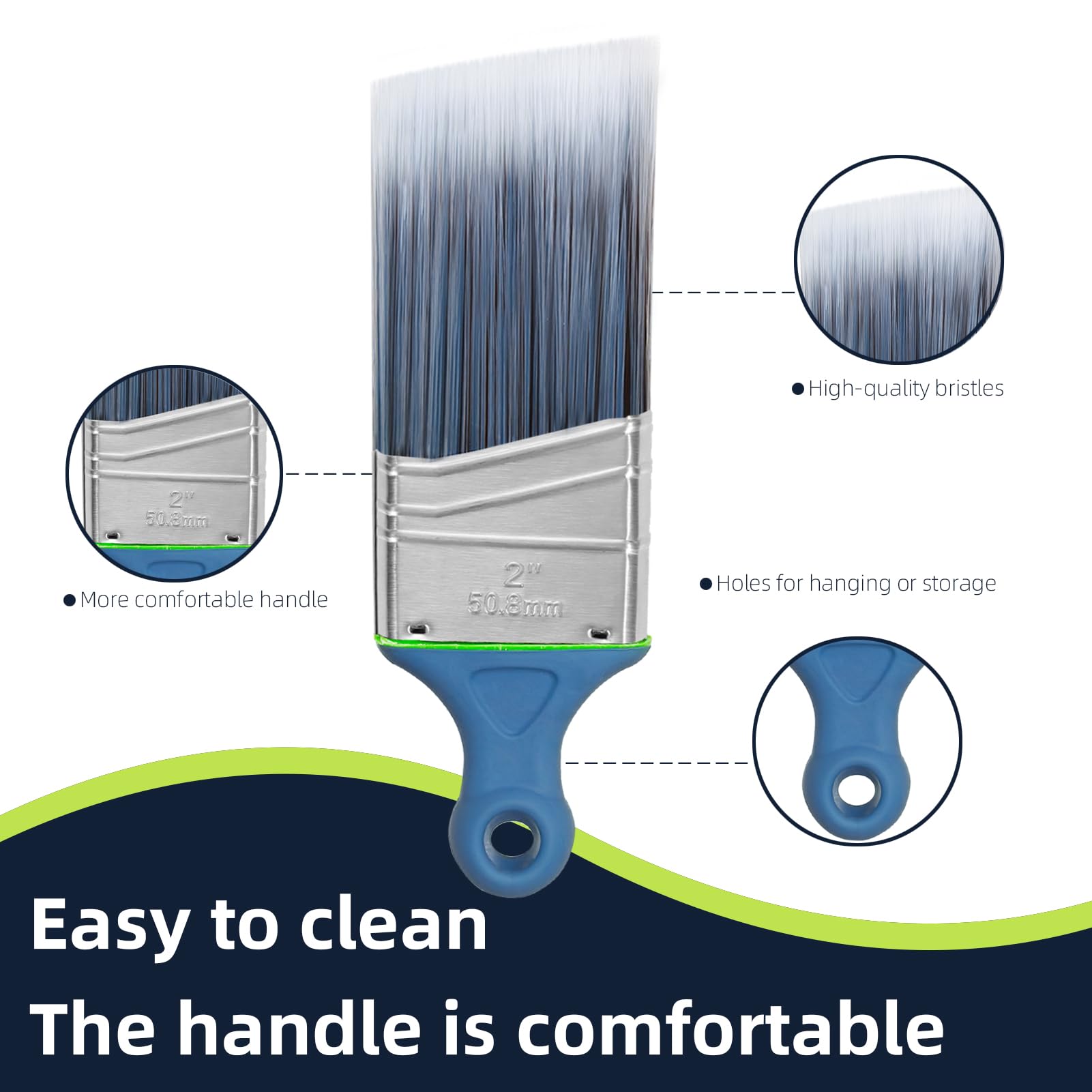 - Ergonomic & Comfortable Design: This angle paint brushes features a short, rubberized handle that provides comfort and control, making it perfect for precise work in tight spaces and narrow areas. The short handle design ensures easy maneuvering for cutting-in and sash painting.