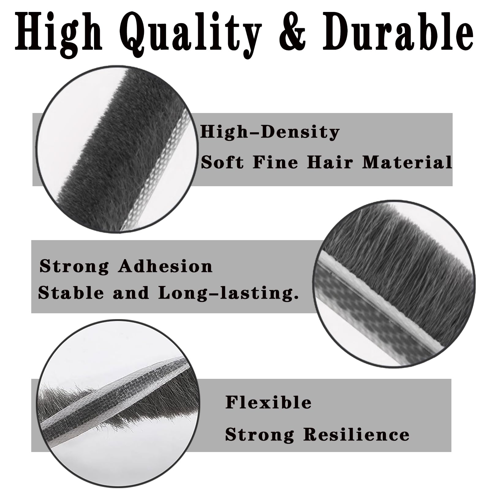 - 【Durable Material 】The Door weather stripping made of durable woven material, high-density, thick and soft fine hair material very furry/fluffy, ensures an excellent seal. Flexible enough, soft bending without deformation. Can accommodate irregular gaps in door and window frames. Can adapt to all kinds of weather, the adhesive is secure, not easy to shed and drop hairs.