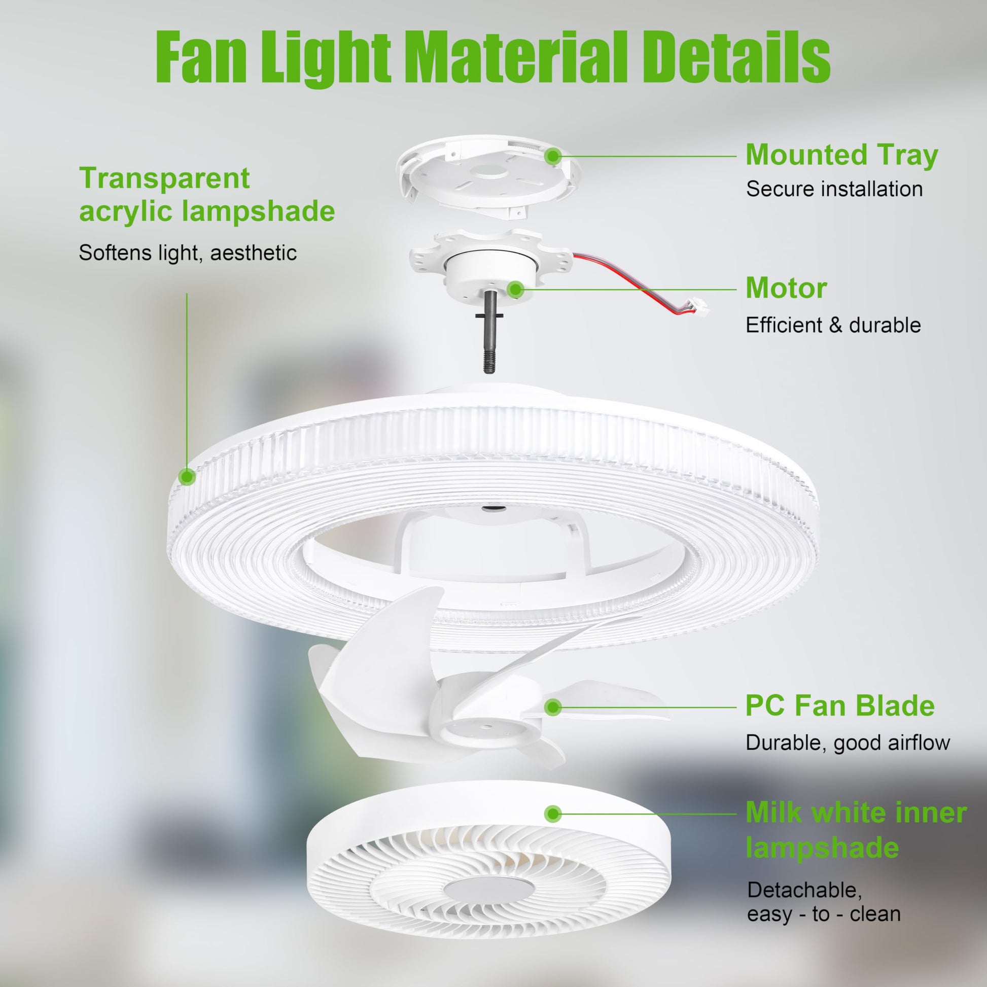 - 【Easy to Install】 The installation of the low-profile ceiling fan light is very simple. You only need to fix the bottom cover on the ceiling, connect the anti-fall rope, and then connect the wires. Turn the fan light according to the hole position so that it buckles with the bottom cover on the ceiling and tighten the screws. In this way, you get a great home decoration that is practical and beautiful. (Tip: Please refer to the instructions for specific installation)