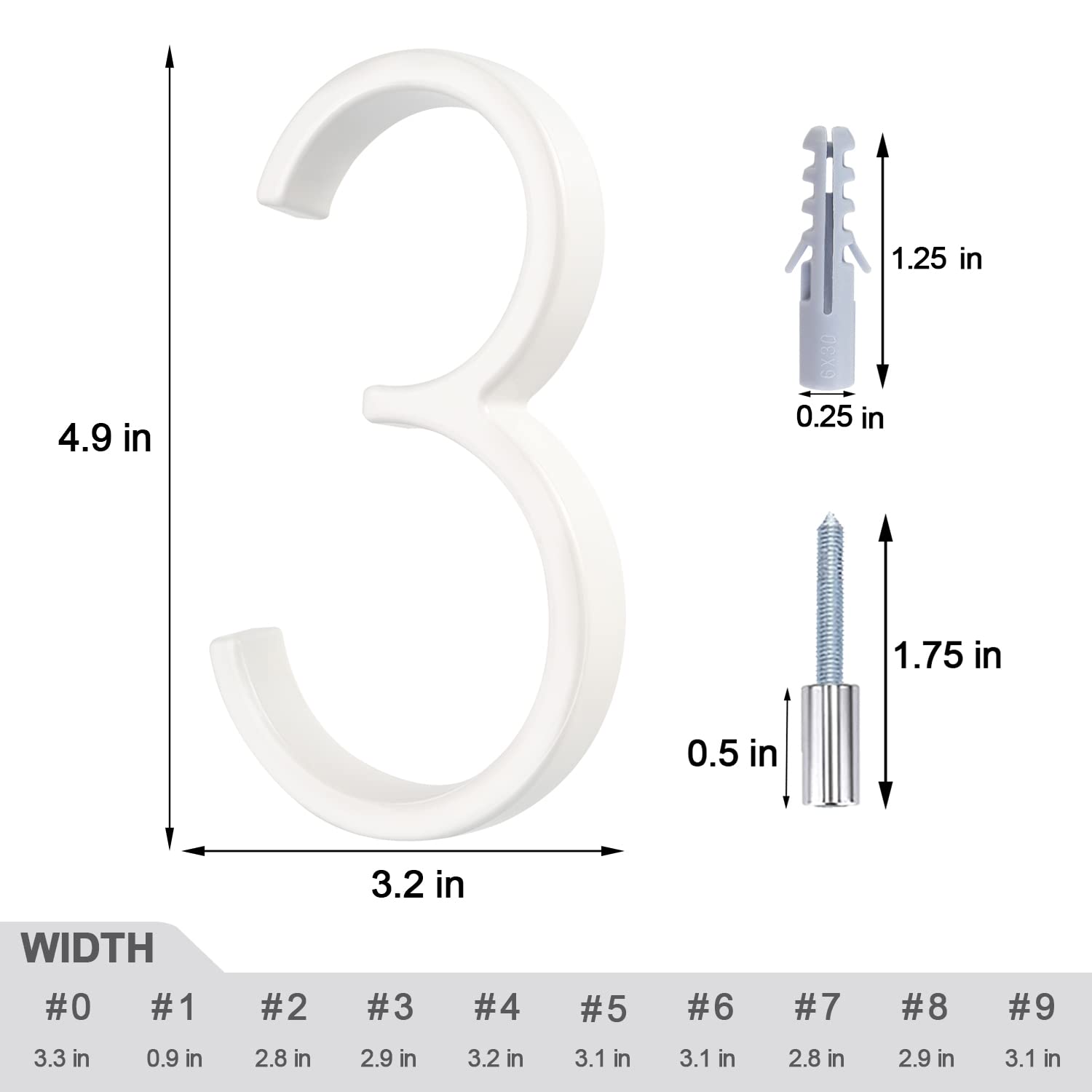 - 【Weather-Resistant】Our home address numbers coated with a weather-resistant finish, these sun-proof and rust-proof white mailbox numbers are specifically designed to last for years. These modern house numbers are approximately 5 inches high and 1/2 inches (13mm) thick, look stunning and elegant regardless of your house's exterior material, whether it is vinyl, stucco, brick or wood.