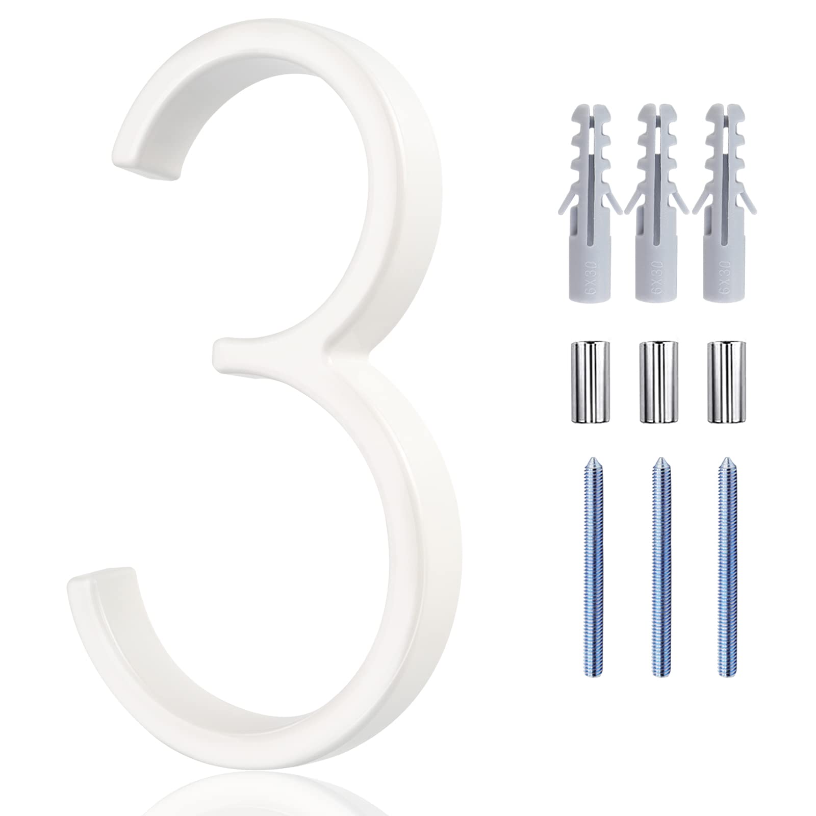 White Floating House Numbers - 5 Inch Modern Metal House Numbers for Outside, Creats Attractive Interesting Shadows, High Gloss Number 3