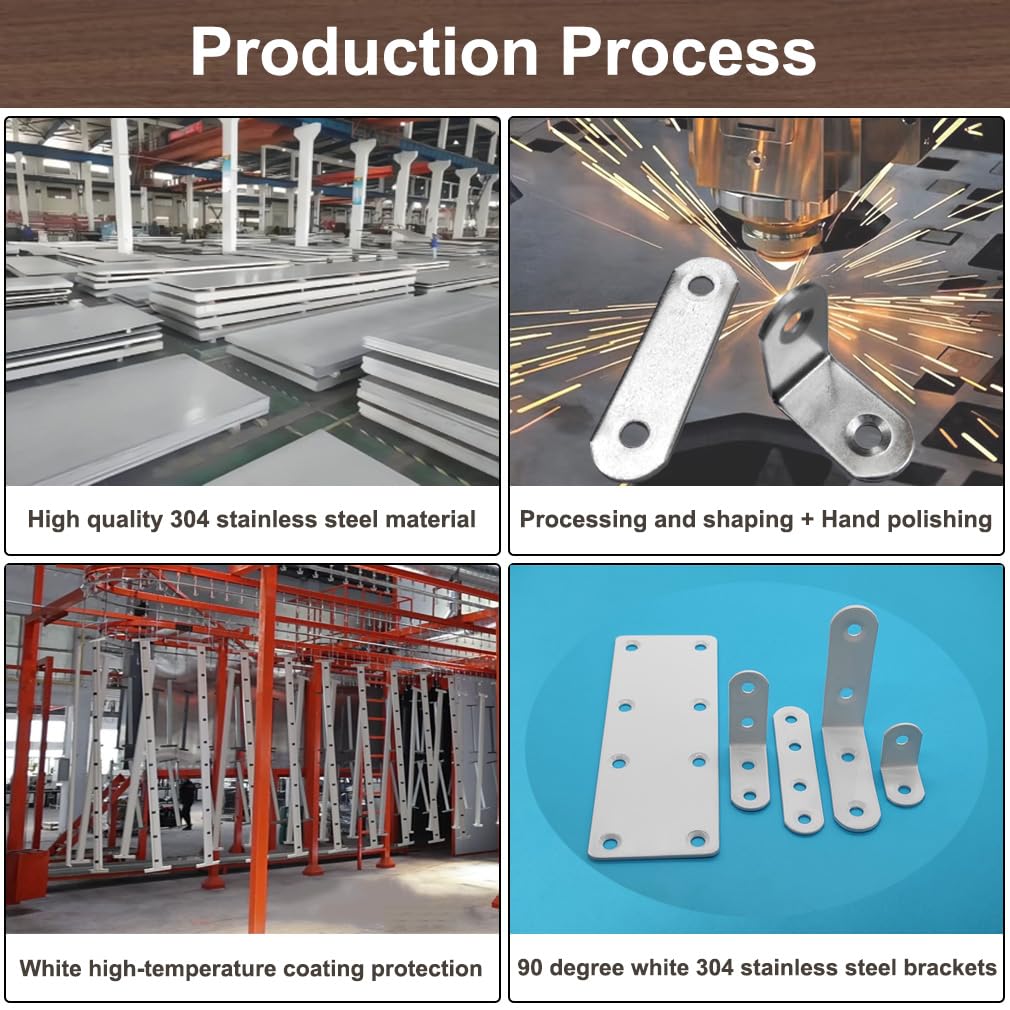 - BRACKET FEATURES: HANFUGA White corner braces and screws are made of high quality 304 stainless steel with high temperature baking coating, rust-resistant, round end, no burrs, countersunk screw hole, safer and more strong.