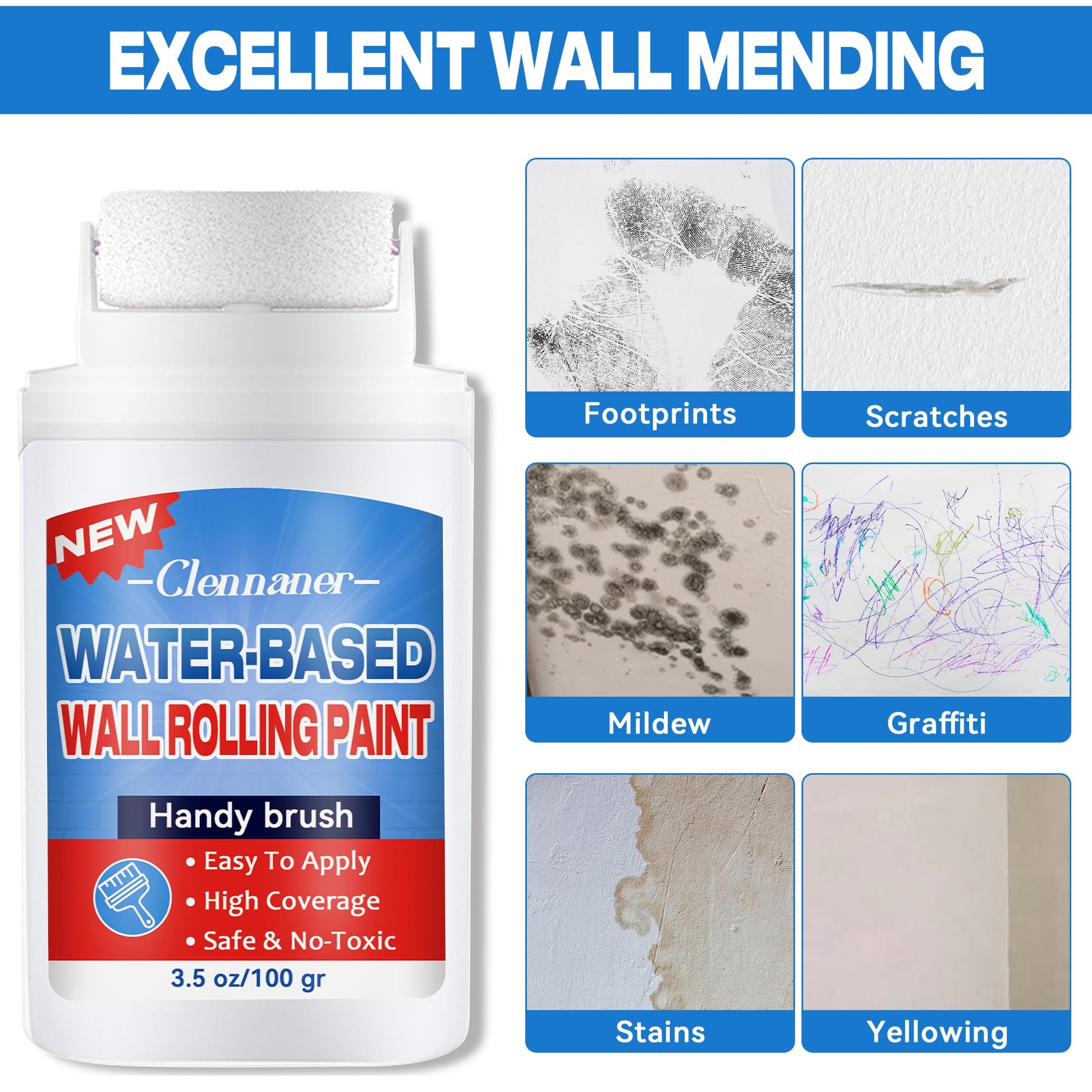 - Impressive Coverage - Our white wall paint delivers strong hiding power, easily covering stains, writing, and imperfections in a single swipe. The quick-drying formula sets in just 10 minutes and blends smoothly into most white walls without cracking, peeling, or fading