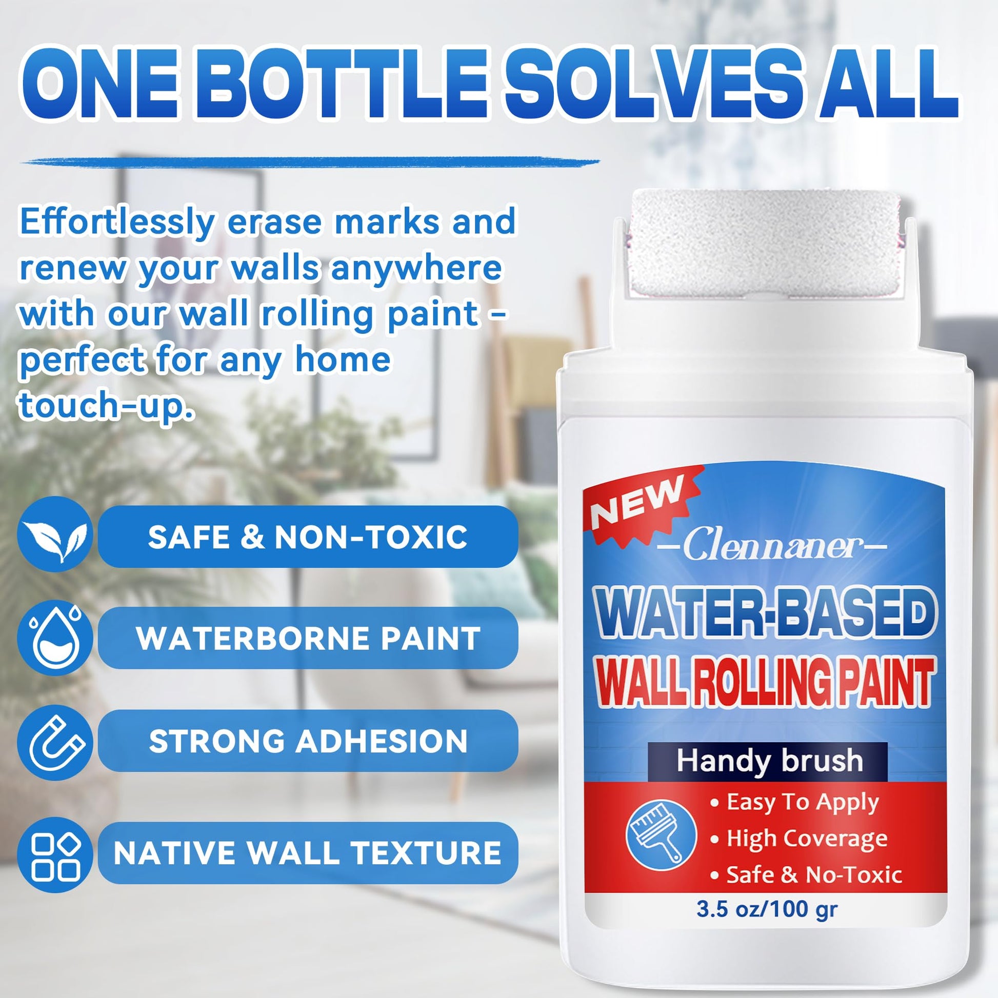- Instant Application - Designed for hassle-free touch-ups, our small roller wall paint combines a built-in roller with pre-filled paint, making repairs quick and straightforward. No need for extra tools or messy prep—just open and roll. Each pack includes two 3.5oz units, ideal for fixing scuffs, marks, and small wall flaws