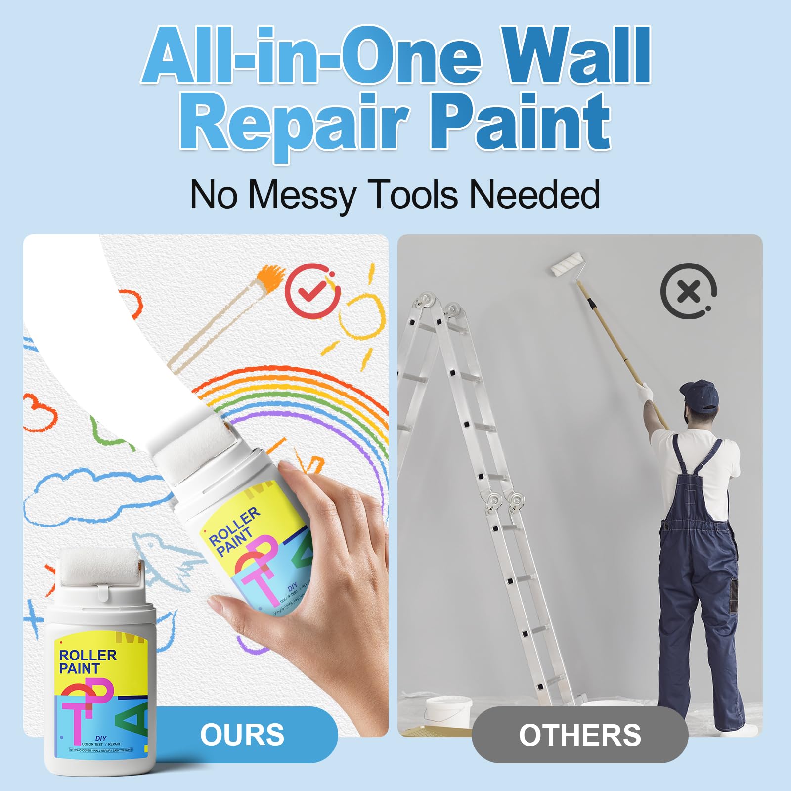 - All-in-One Roller Design: This white wall paint integrates a high-capacity paint bottle and roller brush into one compact unit—no mixing, trays, or extra tools needed. Simply shake, roll, and cover stains, scuffs, or graffiti with ease. Perfect for quick repairs, daily maintenance, or full home touch-ups.